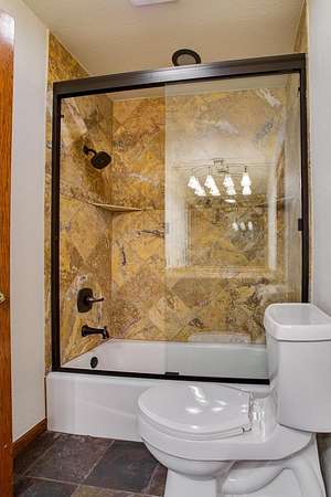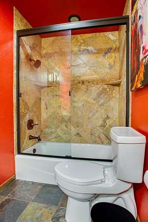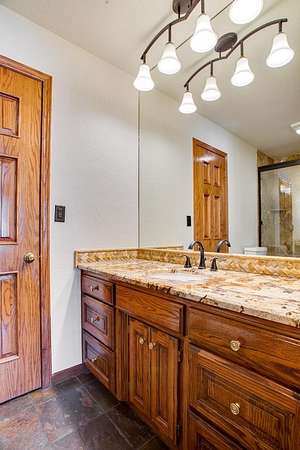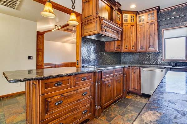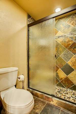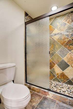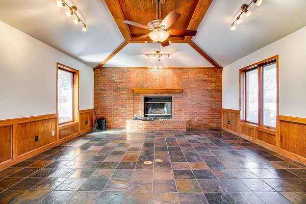 - Ceiling Fans, Fireplace Screen, Hardwood Floors, Shades/Blinds, Slate Flooring, Solid Surface Countertop, Some Carpeting