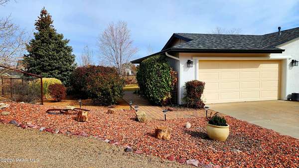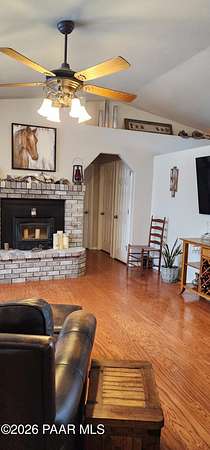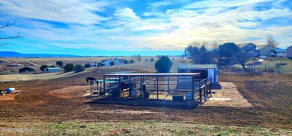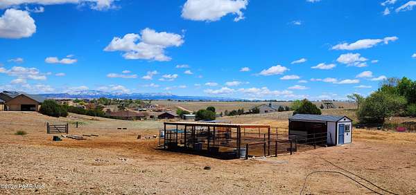 Adorable 3 bedroom, 2 full bath hilltop home w/ views Prescott is 20 min away! Property is professionally landscaped w/ Elm, Pine, Poplar, fruit trees & flowering bushes. Bring the HORSES, no stress here, it's horse ready! 4 covered horse stalls, tack room, large turnout. Area has great trails & equestrian events. Range/state land nearby to ride on. XL predator proof dog run & 3 chicken coops. Entire property is fenced & cross fenced. New roof & gutters in 2024, new appliances, new AC/heat 2020 & a wood stove in the living room. Interior painted in 2023, exterior in process. Too many upgrades to list. There is a large attached 2 car garage & a shed for all the extras. Plenty of room to park your horse trailer or RV. No HOA, Homes only area. Owner/Agent.