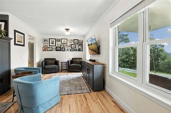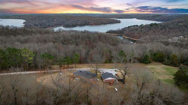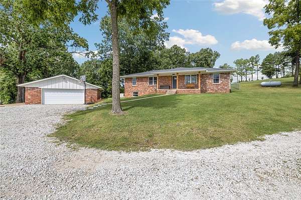 Set on just over 21 acres, this updated home has timeless charm & privacy with Beaver lake views-partial in summer, full vistas in fall & winter. The homes updated interior features 2904 sq ft with 3 bedrooms, 2 bathrooms, solid hickory flooring, new doors & trim, LED lighting & fully remodeled basement with bonus room & recreational flex space. Living room centers around a gas log fireplace & eat-in kitchen includes stainless steel appliances & bar for casual dining. Thoughtful upgrades abound: new tankless hot water heater, new roof on home & garage, whole-home generator w/500-gallon propane tank, Tesla charger, 30 amp RV service, expanded driveway, added culverts & fencing, new landscaping & sod, cedar-wrapped porch columns. Outdoor, a fire pit, trimmed canopy trees, & open acreage create a park-like retreat. Minutes to town & public boat launch, this property offers a rare combination of privacy, beauty, convenience & lake life. One season electric ATV & Commercial 60 inch zero turn convey with property.