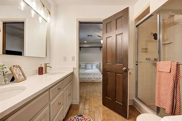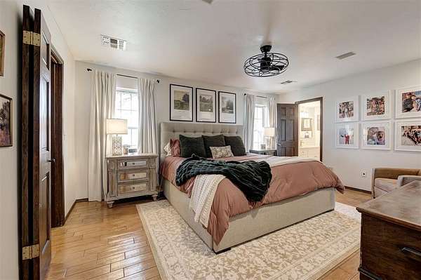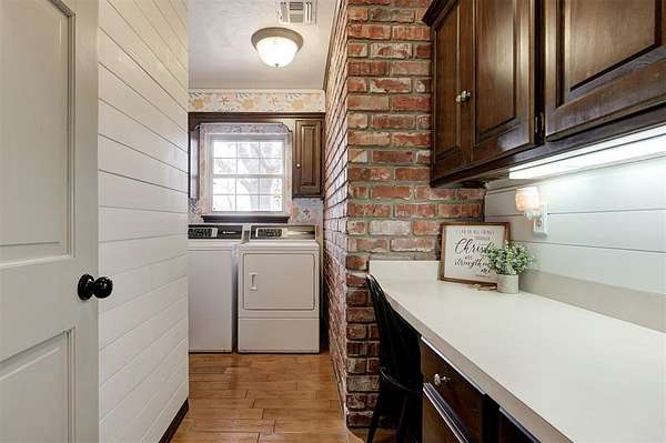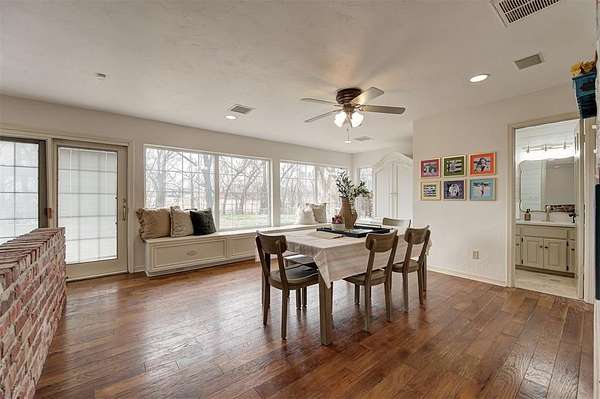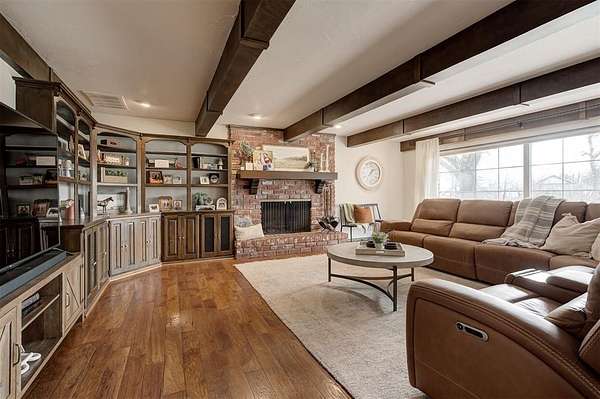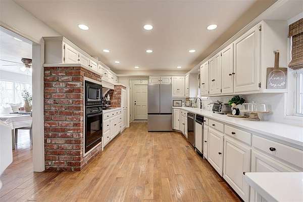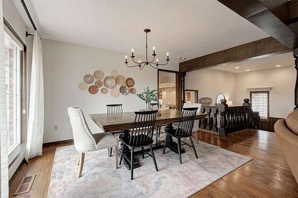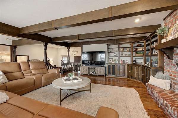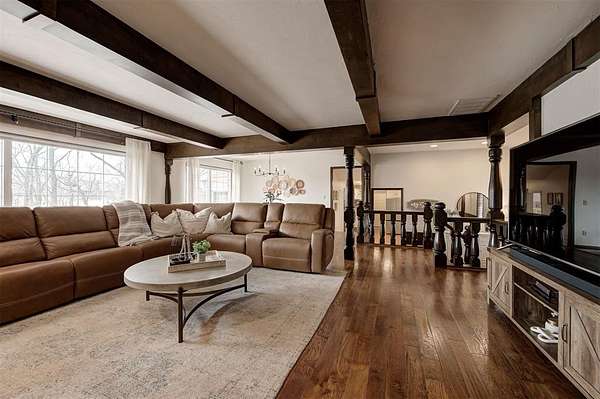 Welcome to this private 5.9-acre sanctuary where land, comfort, and thoughtful design come together in a way that's truly rare. Surrounded by mature trees and open land, the landscape creates a peaceful backdrop that makes acreage living so desirable. Follow the peaceful drive toward the home, where a welcoming front porch and warm exterior make a lasting first impression. Step inside the foyer and you're immediately welcomed by an abundance of natural light, setting the tone for the home's warm finishes and thoughtful design. The main living area is inviting and well-designed, centered around a striking fireplace with built-in cabinetry and shelving. Large windows frame views of the property, maintaining a strong connection to the outdoors. The rich hardwood floors lead you into the kitchen, where updated appliances, quartz countertops, and exposed brick details create a warm culinary space that feels both refined and inviting. The kitchen flows seamlessly into the living and dining areas, allowing movement and conversation to feel effortless. Just beyond the main living spaces, a sunroom offers a versatile, light-filled area complete with a charming updated half bath and flexible space to work, relax, or gather. On the opposite side of the home, you'll find the primary suite, featuring a spacious walk-in closet and a beautifully updated ensuite bathroom with a wall-to-wall jetted tub, creating a relaxing place to unwind at the end of the day. Three generously sized bedrooms and two full updated bathrooms add additional comfort and flexibility. Downstairs, the finished basement expands the living space with a versatile area suited for a secondary living room, media space, or home gym. From there, step outside to discover a six-stall stable building with tack and feed room (50x35), a separate shop building (25x18), and a beautifully designed pergola, creating a polished outdoor setting designed for both entertaining and everyday enjoyment.