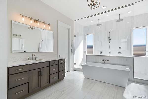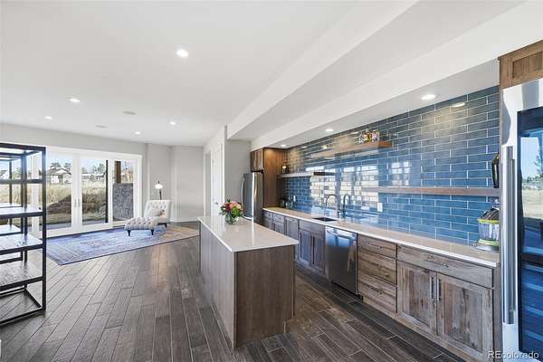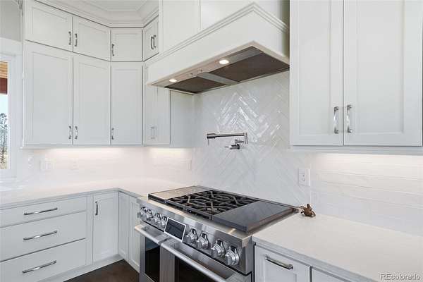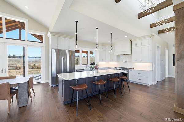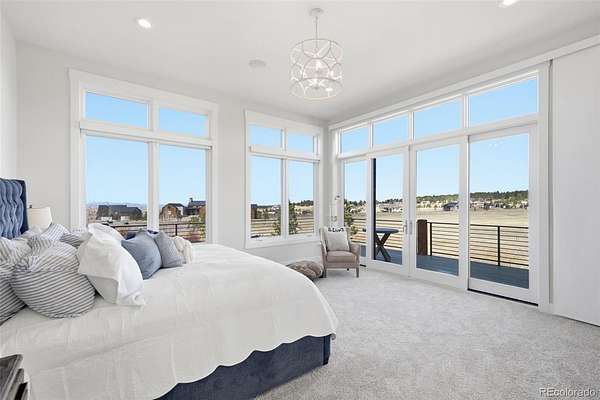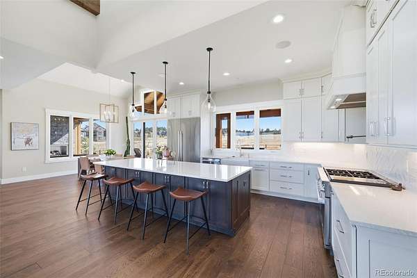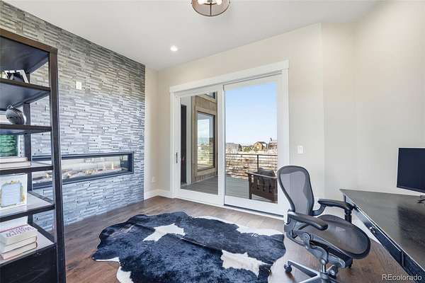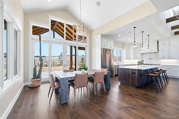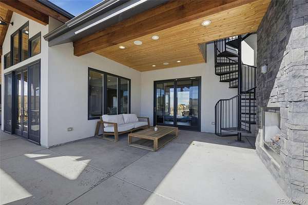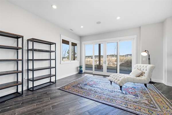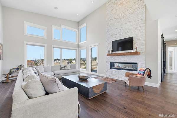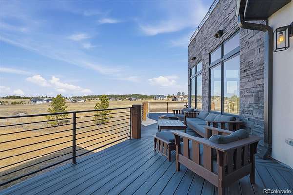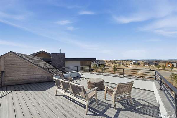 Rarely does a home combine unobstructed Front Range views, open space privacy, and custom luxury design as seamlessly as this exceptional Reed Custom Homes residence in the sought-after Fox Hill community. Perfectly positioned at the end of a cul-de-sac, the property overlooks Fox Hill Farm and offers expansive indoor-outdoor living designed to capture Colorado’s natural beauty. Wraparound decks, covered outdoor living areas with a stone fireplace, and a spectacular rooftop deck accessed by a custom spiral staircase create ideal spaces for entertaining and enjoying unforgettable sunsets. Inside, the vaulted great room features a dramatic two-sided fireplace shared with a private office and flows into the open-concept dining area and chef’s kitchen. The kitchen is equipped with LG Signature Kitchen Suite appliances, including a built-in refrigerator, an advanced range with a steam oven and sous-vide capabilities, and a drawer microwave. Upgrades include marble tile in the spa-inspired primary bath, custom closet systems in the pantry and primary suite, and refined finishes throughout. In addition to the serene primary retreat, the main level offers a private en-suite bedroom, office space with deck access, a spacious mudroom, and laundry. The walkout lower-level features two additional en-suite bedrooms, a dedicated exercise room with glass doors, media and billiards spaces, and a wet bar with a full-size refrigerator and a wine refrigerator. Built with a pier-supported structural floor system for enhanced stability and moisture separation, the home also features energy-efficient appliances, insulated interior walls, and solid-core doors. An HOA-approved future detached garage location provides added flexibility. Fox Hill preserves the legacy of the original 1912 homestead while offering convenient access to the DTC, Castle Rock, Parker, Elizabeth, and Denver International Airport.