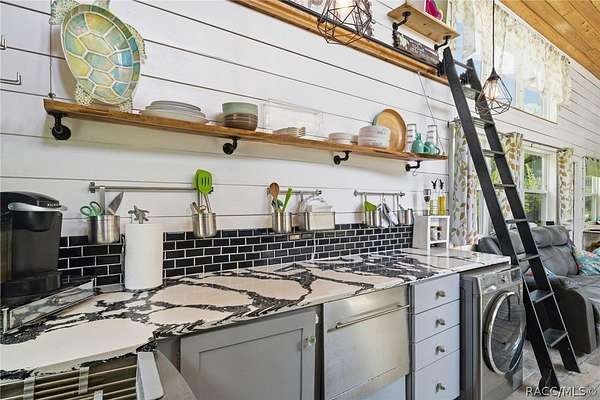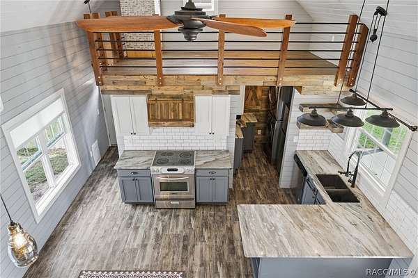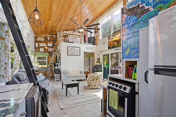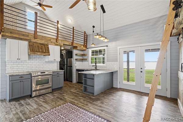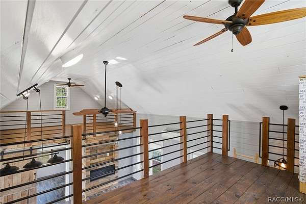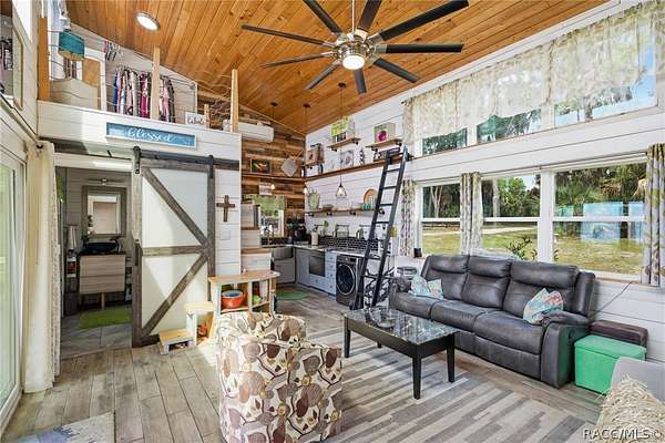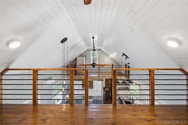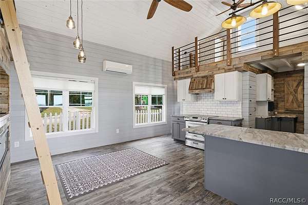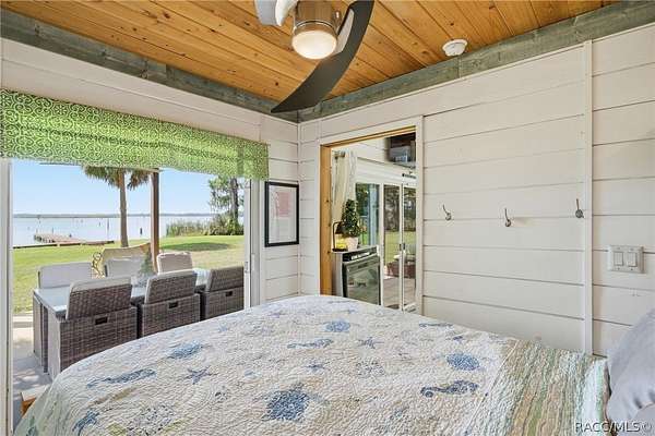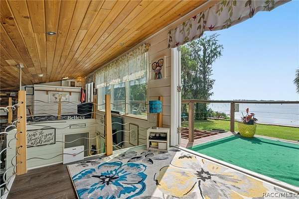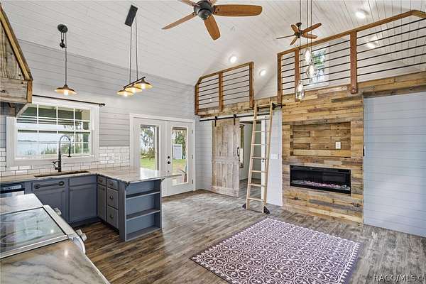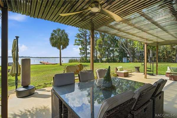 Just in time for summer! A family compound with so many options for fun! This property consists of two homes on 2 lakefront acres! Enjoy endless lake views with gorgeous sunsets from the dock, back porch or from either of the two balconies! Each home consists of one downstairs bedroom and full bath and two loft-style bedrooms where you can decide their purpose! Beautiful kitchen finishes include granite counters in one and quartz counters in the other. You will find Stainless Steel appliances in both kitchens and laundry areas. Very European vibe with the single wash/dry machine in kitchen of one home along with a single drawer dishwasher. The other is more contemporary with stacked washer/dryer. Rustic light fixtures and plumbing really add to the cabinesque feeling that each home exudes. A 9-blade ceiling fan in one house moves air throughout the home, tile floors in both, electric fireplace in one and rolling rail ladder create a dramatic feature-rich interior with each home expressing their own personality. Each home does have an extra shower only area - with full sky view! The primary home also features an outdoor kitchen with built-in cooktop griddle, gas grill, smoker and refrigerator - all with a beautiful view of the surrounding lakeside. Closer to the docks you'll find two firepits. Ideal if you plan on using one home for a VRBO, each party can have their own fire! The waterfront has been cleaned up to create a wide-open view of Lake Rousseau. The property lines extend into the lake, and the water is not that deep along the dock where you can see the fish through the clear water. The Withlacoochee River channel markers will guide you to the Inglis Dam Recreation Area where they have boat ramps and docks for launching. You can either launch into the Lake or into the river from the other side of the dam which leads directly to the barge canal and out to the Gulf. This property is one of the most unique properties to hit the market on Lake Rousseau in some time, so don't delay, see it today!