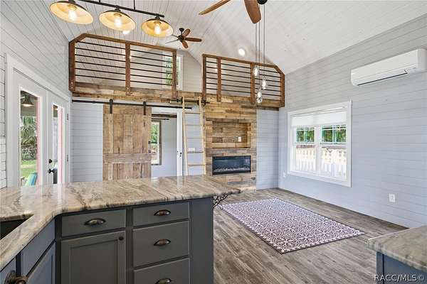 - Breakfast Bar, Cathedral Ceilings, Fireplace, First Floor Entry, French Doors Atrium Doors, High Ceilings, Open Floorplan, Pantry, Sliding Glass Doors, Stone Counters, Vaulted Ceilings