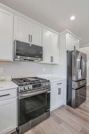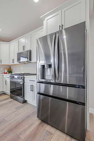 - Carpet, Ceramic/Porcelain, Vinyl, Wood