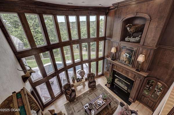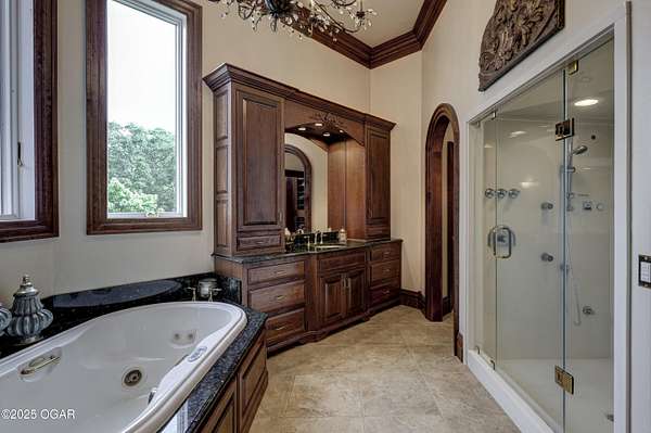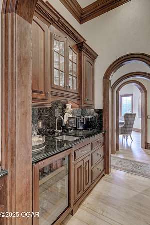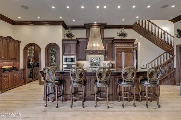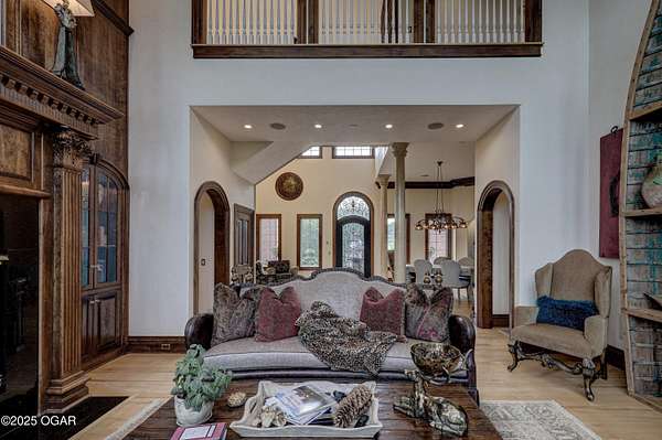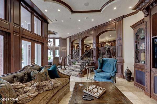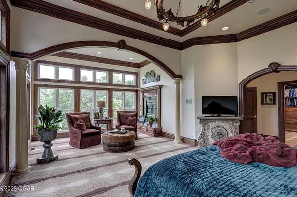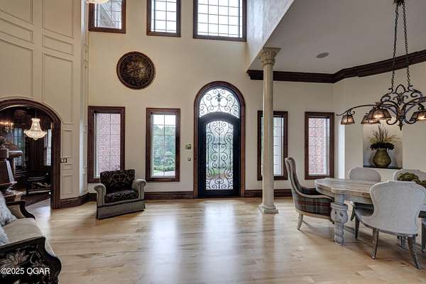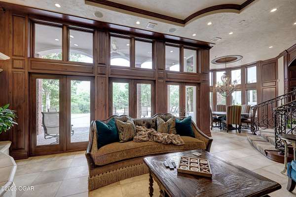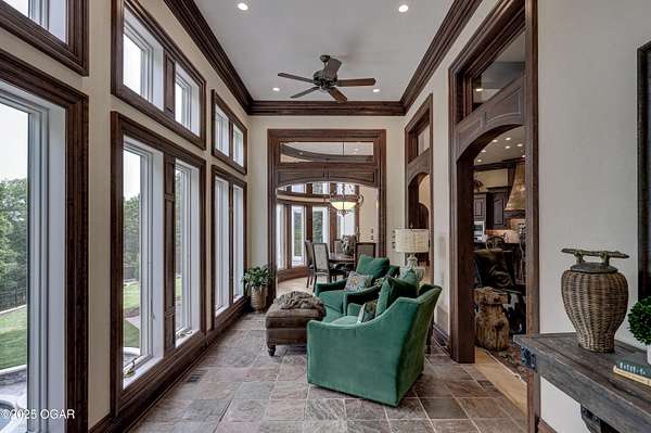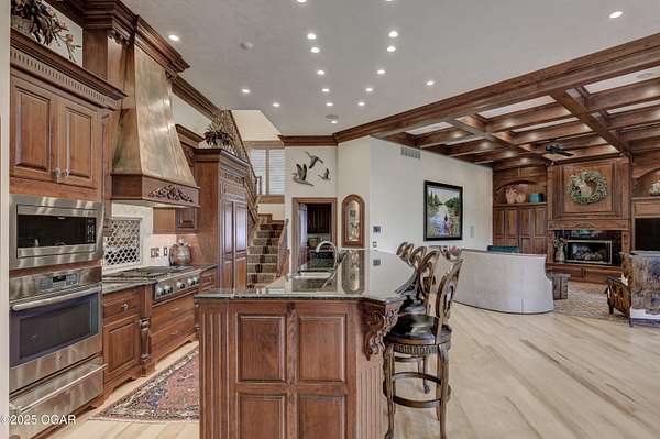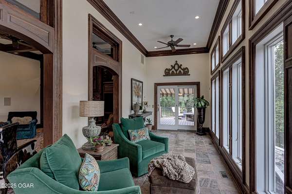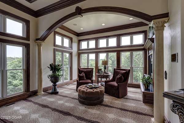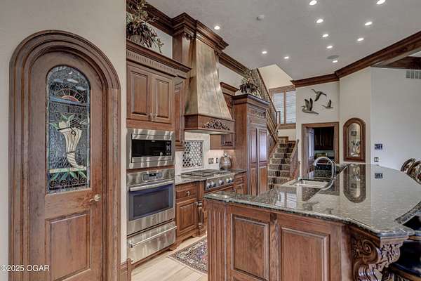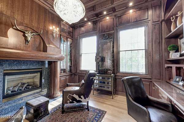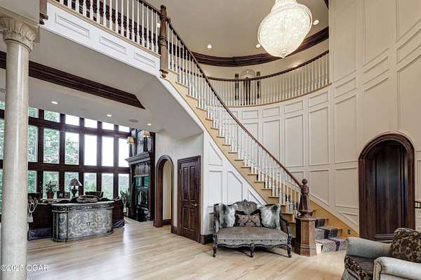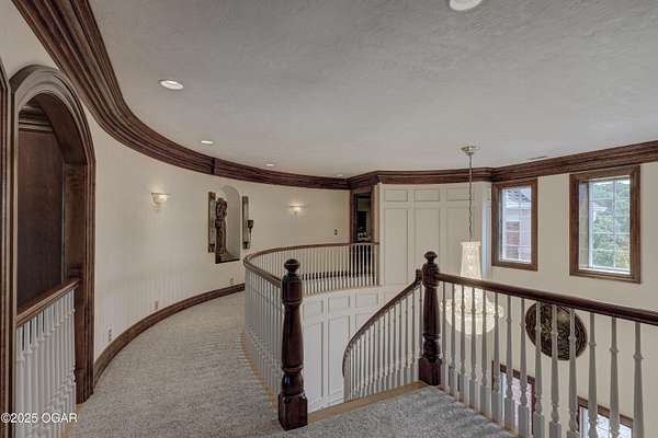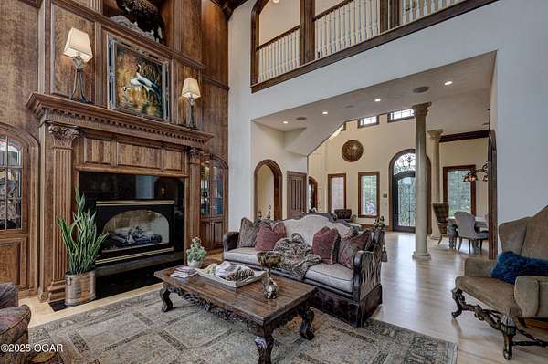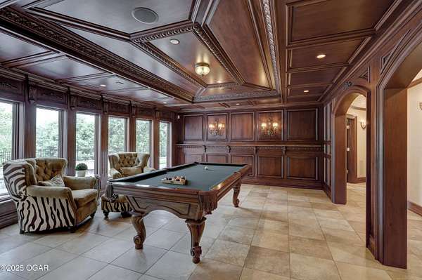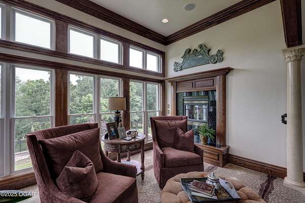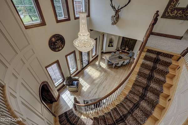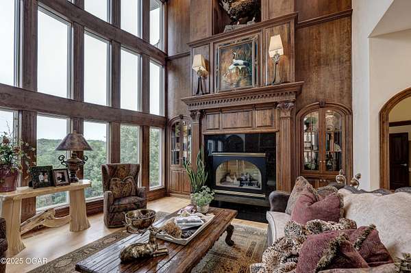 Amazing, quality built home sitting on 10 acres is a unique find in the luxury market. The 5 bedroom, 9 bathroom estate overlooks a beautiful private, wooded setting and features custom cabinetry and woodwork from Alpine Cabinetry throughout. No expense was spared in the details and quality of this home. The gourmet kitchen is perfect for everyday family gatherings and entertaining, and also great for the home chef featuring a 15 foot island, subzero appliances, thermador range, plenty of storage and a butlers pantry! Luxurious main level primary suite with floor to ceiling windows, amazing views, sitting area, and the closet of your dreams. The finished walkout basement is features tall ceilings, full kitchen including subzero appliances, 2 dishwashers, Wolf 36'' convection oven in the butlers pantry, and is the perfect place to relax or entertain guests. The backyard is a beautiful, private oasis with in ground pool, outdoor fireplace, beautiful landscaping and views that will make you feel your vacationing everyday. 5 gas fireplaces, Creston whole house automation system, house on city water and separate well for irrigation system saving hundreds of dollars per month. Minutes to both South Joplin hospitals, shopping, and restaurants. This immaculate home is the top of its class and completely move in ready. Schedule your private viewing today!