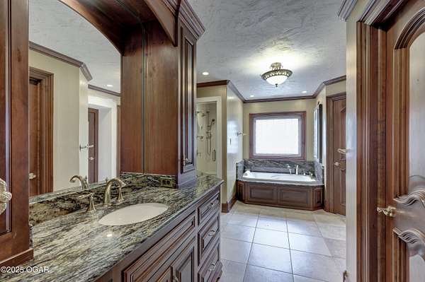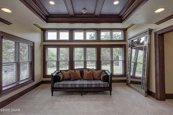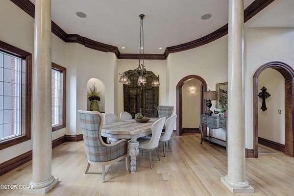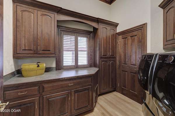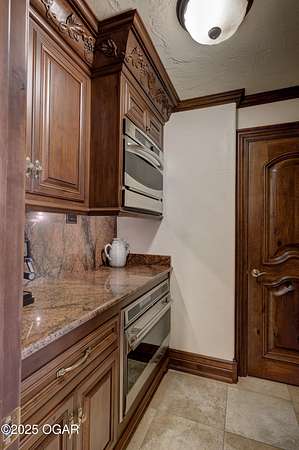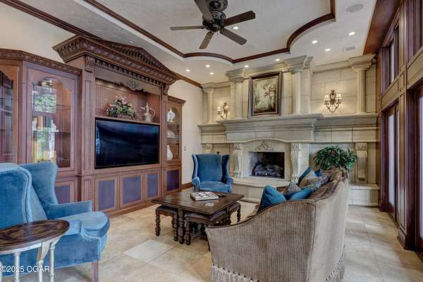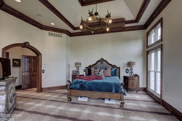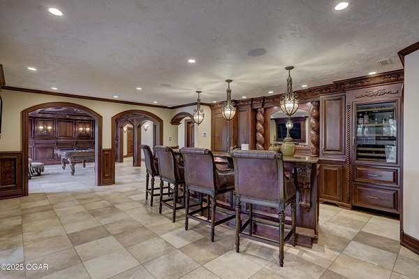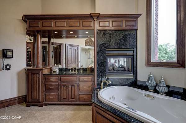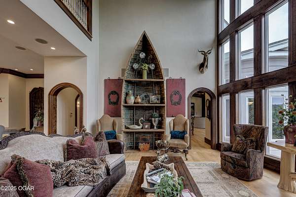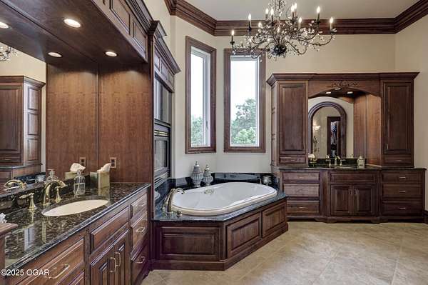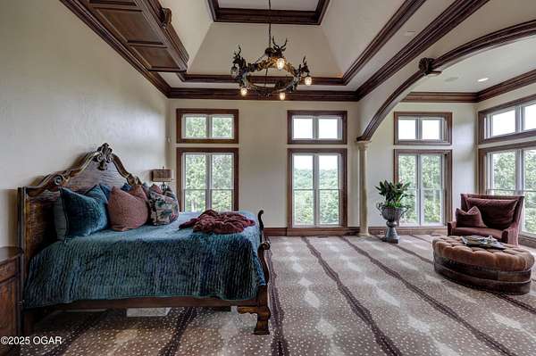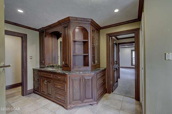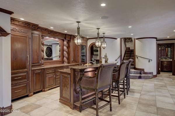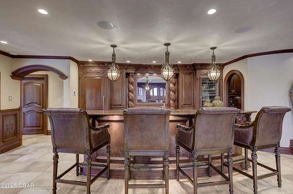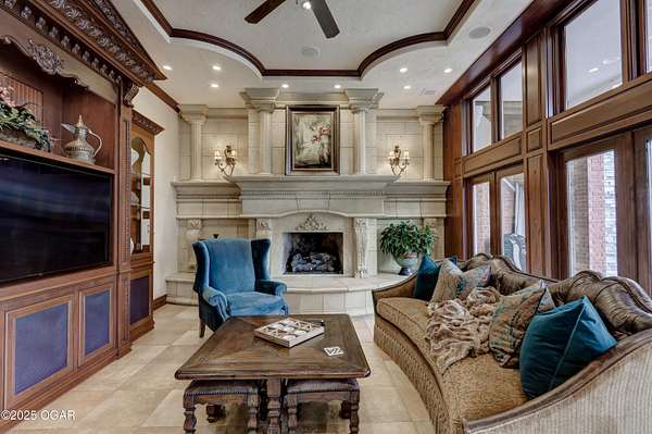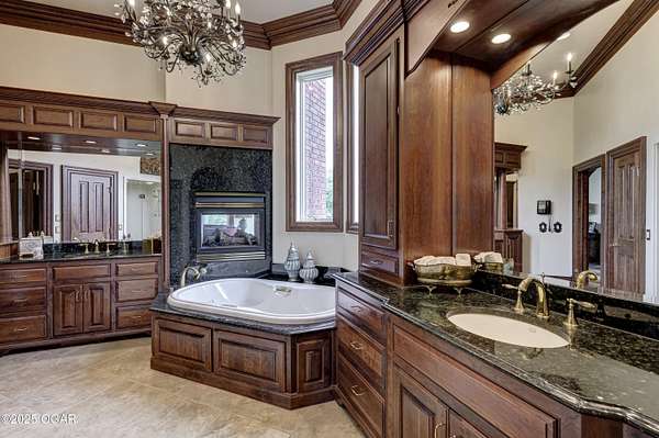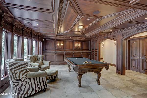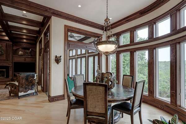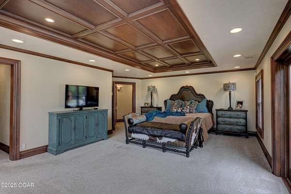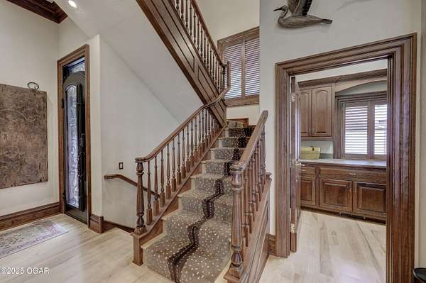 Amazing, quality built home sitting on 10 acres is a unique find in the luxury market. The 5 bedroom, 9 bathroom estate overlooks a beautiful private, wooded setting and features custom cabinetry and woodwork from Alpine Cabinetry throughout. No expense was spared in the details and quality of this home. The gourmet kitchen is perfect for everyday family gatherings and entertaining, and also great for the home chef featuring a 15 foot island, subzero appliances, thermador range, plenty of storage and a butlers pantry! Luxurious main level primary suite with floor to ceiling windows, amazing views, sitting area, and the closet of your dreams. The finished walkout basement is features tall ceilings, full kitchen including subzero appliances, 2 dishwashers, Wolf 36'' convection oven in the butlers pantry, and is the perfect place to relax or entertain guests. The backyard is a beautiful, private oasis with in ground pool, outdoor fireplace, beautiful landscaping and views that will make you feel your vacationing everyday. 5 gas fireplaces, Creston whole house automation system, house on city water and separate well for irrigation system saving hundreds of dollars per month. Minutes to both South Joplin hospitals, shopping, and restaurants. This immaculate home is the top of its class and completely move in ready. Schedule your private viewing today!