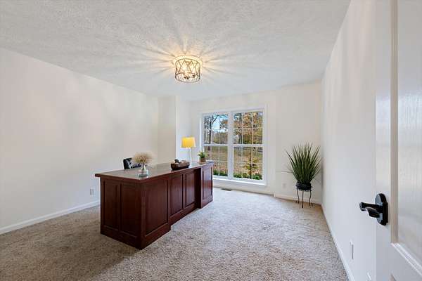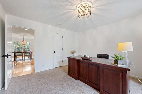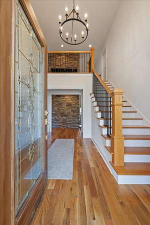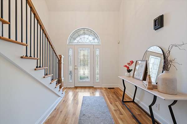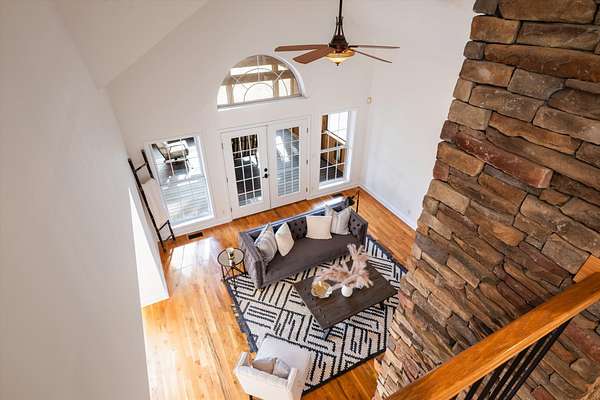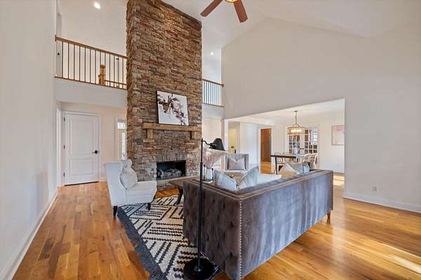 Step inside to find gleaming hardwood floors throughout the main level (excluding office/2nd bedroom), creating a warm and inviting feel the moment you arrive. The spacious den features a stunning two-story gas fireplace, perfect for cozy evenings, and flows seamlessly into a dedicated dining area and the expansive kitchen.