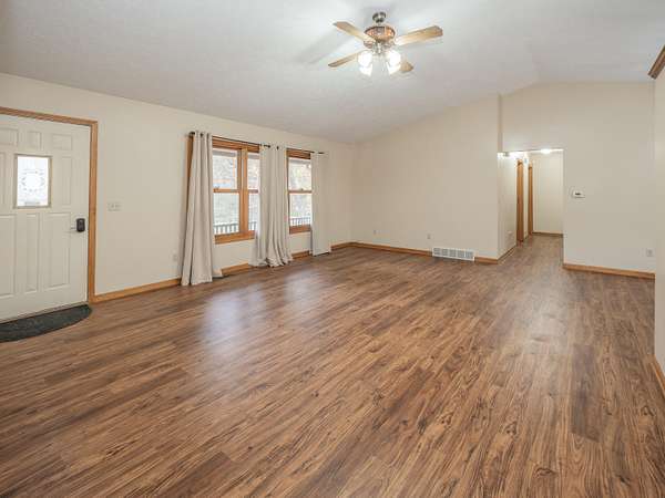 Welcome home to this beautiful 4 bedroom, 3 full bath walkout ranch set on over 11 acres of serene countryside. The main level features a large living area with vaulted ceilings, dining area and slider out to the deck overlooking the private back yard. The main floor primary suite offers comfort and privacy with its own full bath, while the convenient main floor laundry adds ease to daily living. The finished walkout basement provides additional living space, ideal for a family room, recreation area, or home office, with direct access to the outdoors. A 2-car attached garage ensures plenty of storage and convenience. With over 11 acres, there's room to roam, garden, hunt or enjoy outdoor activities, all while being surrounded by peace and privacy. This property is the perfect blend of modern living and country charm.