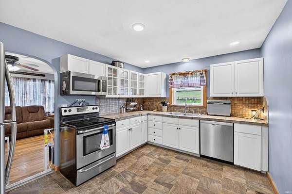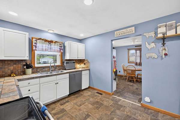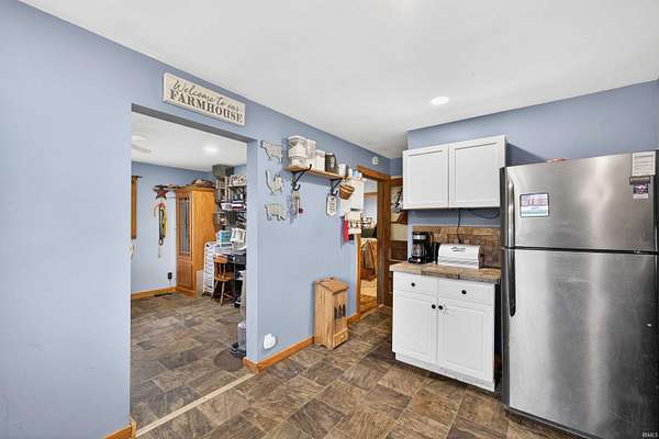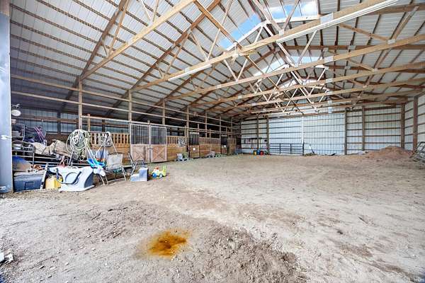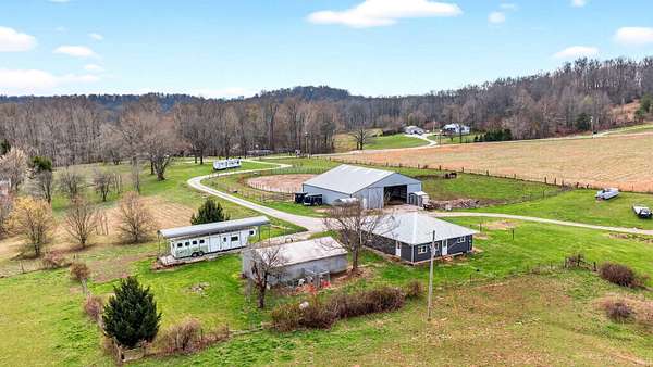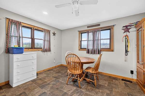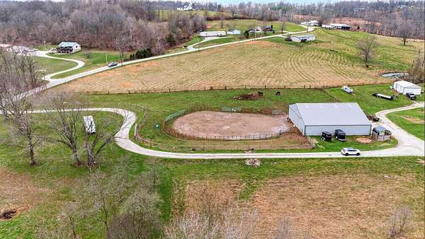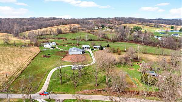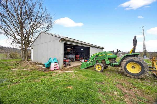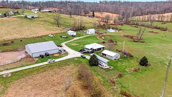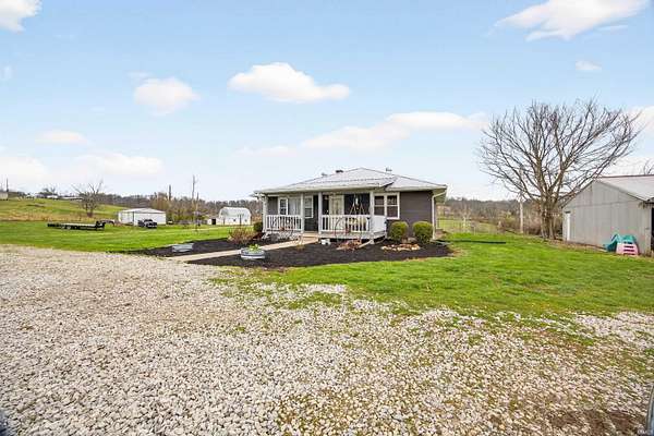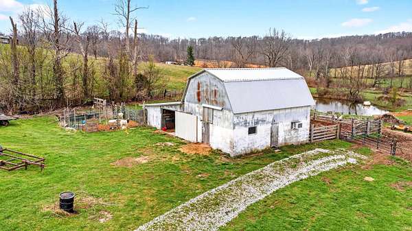 PICTURESQUE MINI-FARM. SCENIC. FUNCTIONAL. This charming TWO bedroom, TWO bathroom farmhouse is situated on 25 beautiful acres, offering a private setting with gorgeous views and beautiful landscaping throughout. Conveniently located close to Crane, this property provides peaceful country living with easy access to nearby amenities, and plenty of fenced in pasture for the livestock. Step onto the covered front porch and enter into a spacious living area filled with natural light and beautiful hardwood flooring. Straight ahead, you’ll find the kitchen, which flows seamlessly into the dining area, conveniently located near the laundry room. The home also features an unfinished partial basement, providing additional storage or potential. The property is currently being used as a horse farm making it ideal for livestock, horses, or recreational use. Enjoy the peaceful surroundings while still being conveniently located near Crane with an easy commute to Bloomington and Bedford. Additional features include a 35' x 28' detached 2-car garage, a 30' x 21' barn, and two additional 24' x 36' barns, offering ample space for equipment, animals, or hobbies. The property also includes RV parking and a pond located in the backyard, adding to its charm and functionality. Home comes complete with kitchen appliances, includes a home warranty with a 7-star buyer upgrade, and has the possibility of qualifying for 100% USDA financing. With expansive acreage, versatile outbuildings, and a peaceful setting, this property offers the ideal blend of country living and everyday convenience.