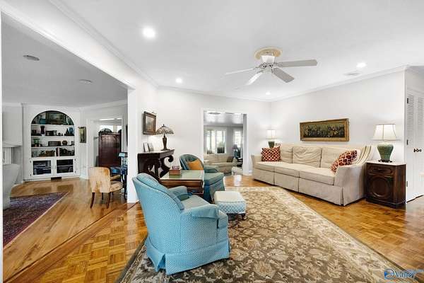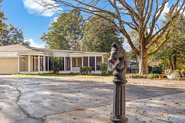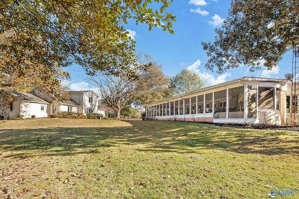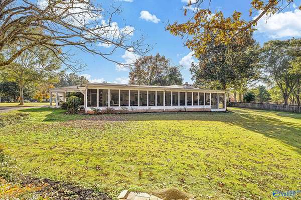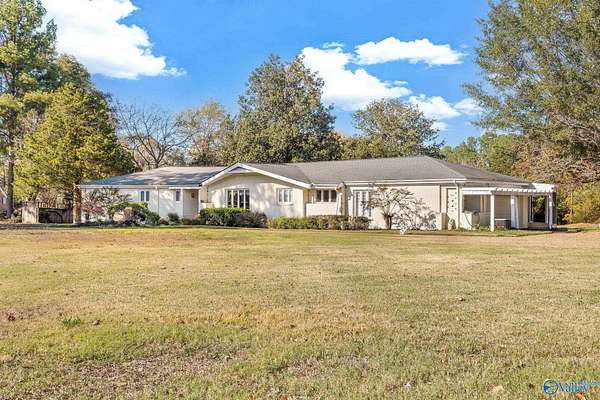 Don't miss this mid-century modern with endless potential, tucked away on 2.8 acres in Hartselle. Offering 4,538 sqft of living space, the main level includes 3 bedrooms, 3 spacious living areas, and a formal dining room. The full basement provides even more versatility with a large den and 2 additional bedrooms-ideal for guests, in-laws, or a teen suite. A 1,659 sqft detached garage features a 1,012 sqft finished bonus room above and parking for up to 5 vehicles, plus a private rear driveway for added convenience. Outdoor living shines with a 1,214 sqft screened porch and built-in kitchen-perfect for entertaining or relaxing. A rare find combining space, style, and privacy!
