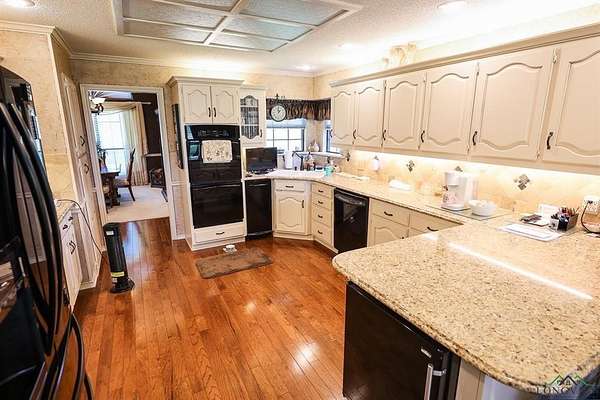 ABSOLUTELY GORGEOUS PROPERTY READY TO MOVE IN ON ALMOST 14 ACRES. ALMOST 3000 SQ FT CUSTOM 3BR 3 BATH WITH 2 LIVING AREAS, FORMAL DINING, BREAKFAST ROOM, BREAKFAST BAR AND LARGE UTILITY ROOM. COVERED PATIO LOOKS OVER ADDITIONAL 52 ACRE HIGHLY IMPROVED HAY MEADOW WITH LARGE STOCKED POND THAT IS ALSO AVAILABLE. ALSO INCLUDED IS LARGE 2 BAY SHOP BUILDING JUST STEPS AWAY FROM HOUSE WITH ATTACHED MOTHER IN LAW SUITE OR GUEST HOUSE WITH BR, BATH AND FULL KITCHEN.SHOP-MANCAVE ALSO INCLUDES KITCHEN AREA FOR ENTERTAINING. THERE IS AN ADDITIONAL 2 STALL METAL STORAGE BUILDING INCLUDED AS WELL. PROPERTY HAS TONS OF ROAD FRONTAGE AND IS JUST MINUTES AWAY FROM LAKE FORK, CYPRESS SPRINGS, BOB SANDLIN AND LAKE WINNSBORO.