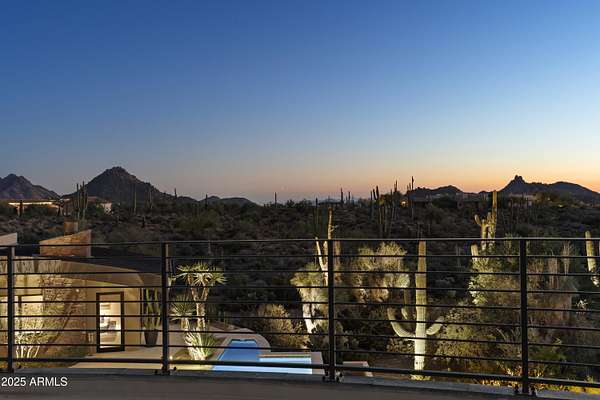 A private desert sanctuary just minutes from North Scottsdale's premier dining, shopping, golf, and hiking, this 8,000+ sq ft estate on 3.6 acres in gated Sonoran Reserve exudes luxury and effortless style. Recently updated with new wood flooring throughout, a refreshed kitchen, and freshly painted custom-textured walls. Featuring four ensuite bedrooms in the main house and a 1,096 sq ft guest house with living area and two baths. Expansive patios, a sparkling pool, and an elevated deck create perfect spaces for entertaining, all overlooking sweeping 360 degrees desert vistas where each sunset feels like a private masterpiece. If you're looking for complete privacy with stunning desert views and picturesque sunsets you have found your dream home. Designed by Award winning architect Marc Soloway.