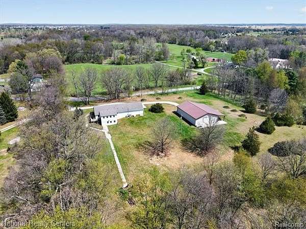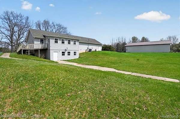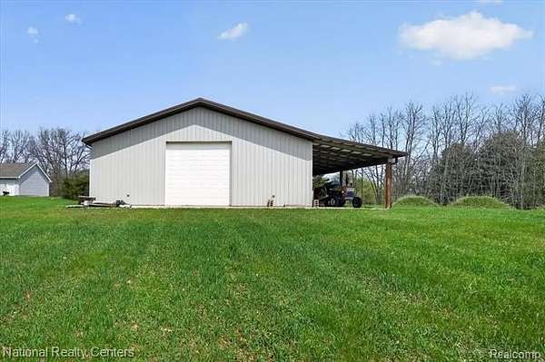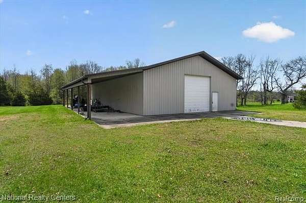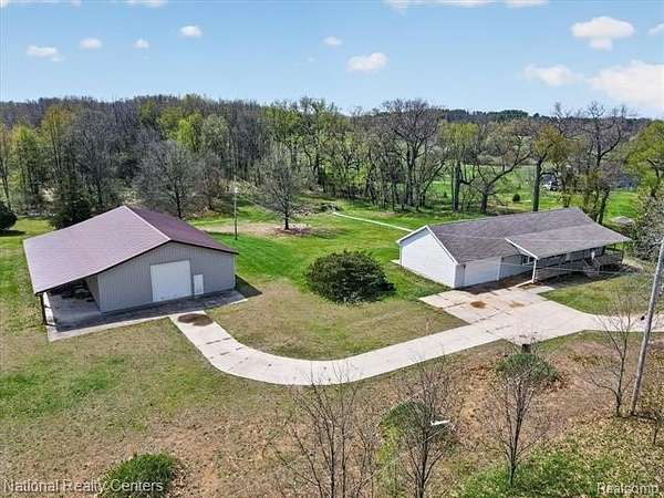 1st time offered for sale. A covered front porch spans the front of the home and welcomes you to this low-maintenance ranch with offers plenty of features and opportunities. The parcel is 10+ acres, over 1/2 of which is wooded. The house has accessibility features, including ramps to the front porch, inside the garage, and a ramp on the side of the house, providing access to the family room at the back of the home. Extra-wide hallway, and the 2nd bedroom has 2 closets (including an 8 x 7 walk-in) and a 7' x 9' ceramic bath with a curb-less shower and a sink which accommodates a wheelchair. The primary bedroom is off the living room and has its own bath with a one-piece tub and shower. Convenient first-floor laundry is extra wide and has a laundry tub. The Oak kitchen includes all appliances and has a window over the kitchen sink, a gas cooktop, and a built-in oven. The dining room leads to the family. The furnace, C/A and water heater were replaced in 2020, and there is a whole-house generator. A walk-out lower-level features extra-tall walls is rough plumbed for a bath and is perfect for finishing. The garage is extra deep and has additional storage near the ramp. The paved driveway leads to the 60' x 40' pole barn with front and back extra-high roll-up doors and 12' ceiling, electric, and a paved 14' x 60' lean-to on the side. Furnace, C/A, and Water heater in 2020. Check with the township regarding whether horses are allowed and if a split might be possible. Exclude personal property in the pole barn. Property is sold As-Is. Buyer and buyer's agent to verify all information.