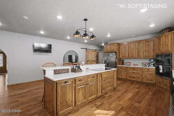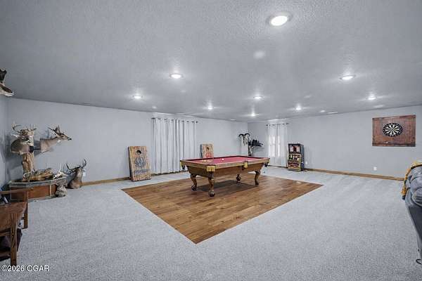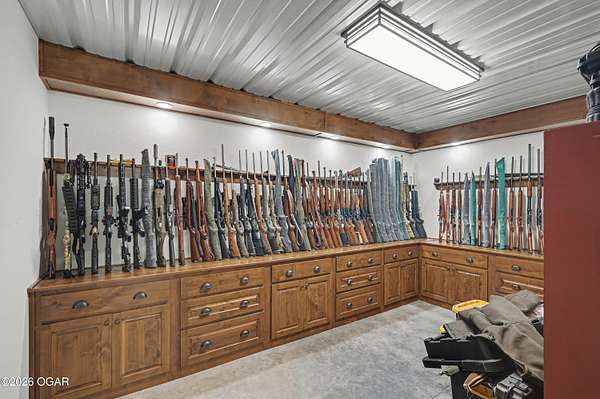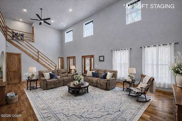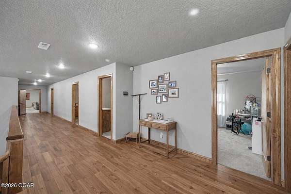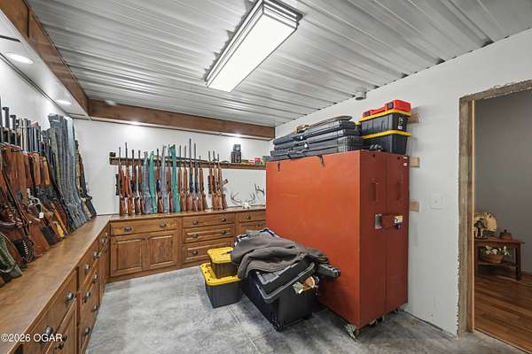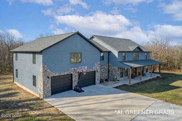 Excellent upgrades -- these are very strong buyer-psychology improvements. Mentioning location anchors value, and moving the vault earlier increases perceived uniqueness (which is critical for higher-end rural properties). Here is the refined luxury version with: Vault moved forward (high-impact feature) Dedicated home office added (huge modern trigger) Location positioning added naturally (not salesy) Tone kept high-end and confident Set across 36 secluded acres with a spring-fed creek and established private trails, this extraordinary property offers a rare blend of refined living and immersive natural surroundings. The setting delivers a remarkable sense of privacy and scale while remaining conveniently located just minutes from Mercy and Freeman Hospitals in Joplin, as well as Neosho and I-49, providing both seclusion and accessibility. The custom-built residence was designed to make a striking first impression, featuring dramatic 18-foot ceilings and expansive custom windows that flood the home with natural light. Every space reflects intentional design and generous proportions, with all rooms offering an expansive feel that enhances both comfort and livability. One of the property's most compelling features is the reinforced concrete vault / safe room, constructed with 8-inch thick concrete walls and ceiling and a 24-inch concrete floor -- a rare structural enhancement providing exceptional security, resilience, and peace of mind. Finishes throughout the home were selected with both quality and timeless appeal in mind -- acacia wood hardwood flooring, cement grey matte porcelain tile, solid wood interior doors, Early American stained trim, oil-rubbed bronze hardware, and a sophisticated Dorian Grey palette create a cohesive and inviting aesthetic. Quartz surfaces extend beyond countertops to include matching quartz window sills, reinforcing the home's consistent attention to detail. The kitchen serves as a true centerpiece, showcasing custom knotty alder cabinetry paired with White Arabesque quartz countertops and a full suite of black stainless Frigidaire appliances. An induction cooktop, built-in wall oven, and convection microwave deliver modern performance, while specialized storage features -- including utensil pull-outs, spice storage, pots-and-pans drawers, and a concealed dual-can trash system -- elevate everyday functionality. A workstation apron-front sink further highlights the kitchen's thoughtful blend of design and practicality. The oversized kitchen and dining areas offer exceptional scale for entertaining. Designed for modern living, the home includes a dedicated home office, providing a quiet and functional workspace without sacrificing comfort or aesthetics. Smart-home integration further enhances convenience, with Wi-Fi enabled thermostats, water heater, and garage door opener allowing for remote access and control. Separate climate zones for upstairs, downstairs, and the expansive game room ensure tailored comfort throughout. Starlink internet infrastructure is fully installed, supporting reliable high-speed connectivity within this private setting. A substantial 1,200 square foot game room offers exceptional flexibility for recreation, gathering, or media space, complemented by an oversized two-car garage with extended depth for storage and workspace. True to the home's design, these areas maintain the same expansive character found throughout the residence. Beyond the residence, the acreage itself becomes a defining amenity. Winding trails, mature landscape, and the spring-fed creek create a remarkable outdoor environment suited for recreation, hunting, and exploration. Rural water and electric access on three sides provides outstanding flexibility for future expansion, additional structures, or development opportunities -- an increasingly valuable attribute for long-term versatility.