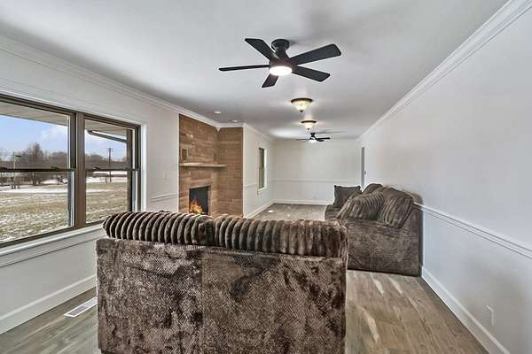 This stone home has weather many a storms and just keeps standing strong, in immaculate condition, with so much character, recently updated with flooring, paint, lighting, drywall, cabinets, counter tops, appliances, and so much more you need to see it for yourself, built in flower planters on the front, concrete covered front & back porch. 2 bedroom 2 1/2 bath home with a spacious bonus room that you decide what you would like it to be. . Unfinished basement to do your own designing. No restrictions on this 4.55 acres with barn/workshop and cleared land that can be easily fenced for your livestock. Additional building that needs repairs that could be a great she shed or just storage. Plenty of room for garden. Level to rolling corner acreage. Additional acreage can be purchased. Call for details and showing