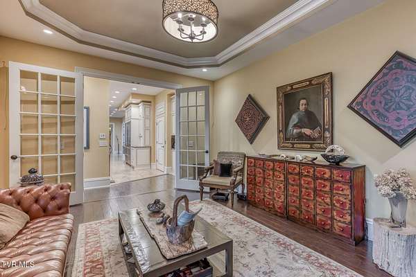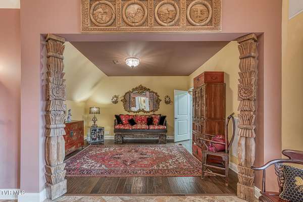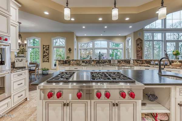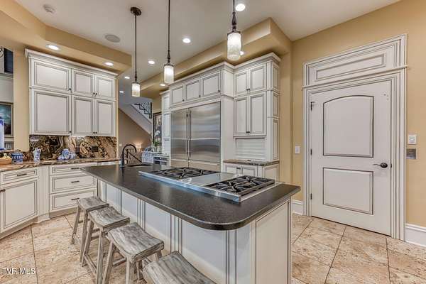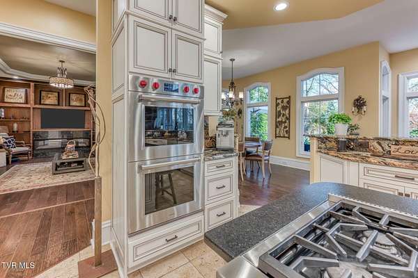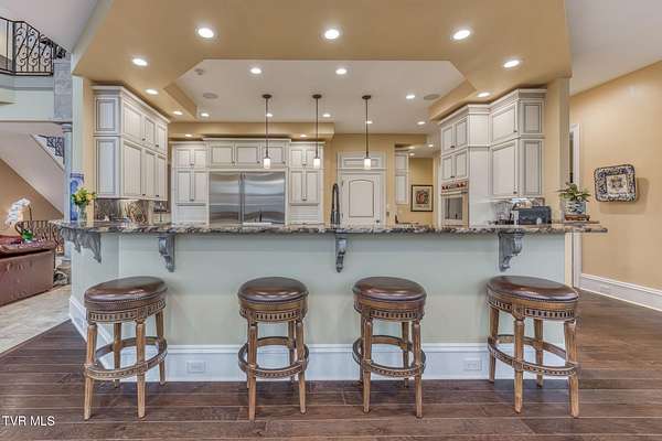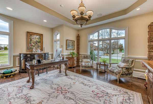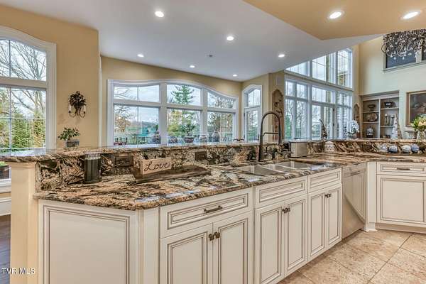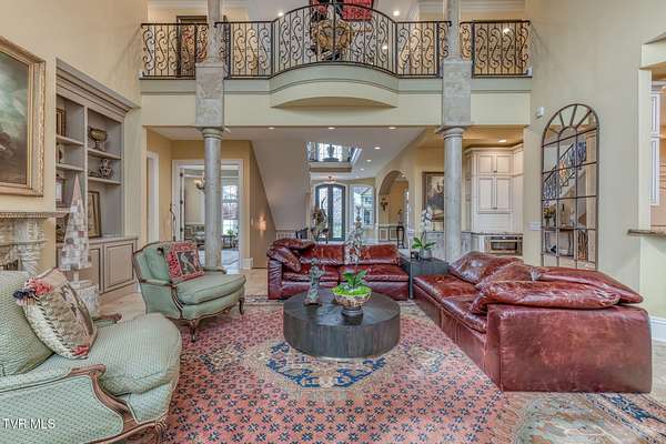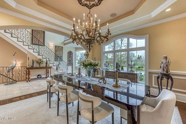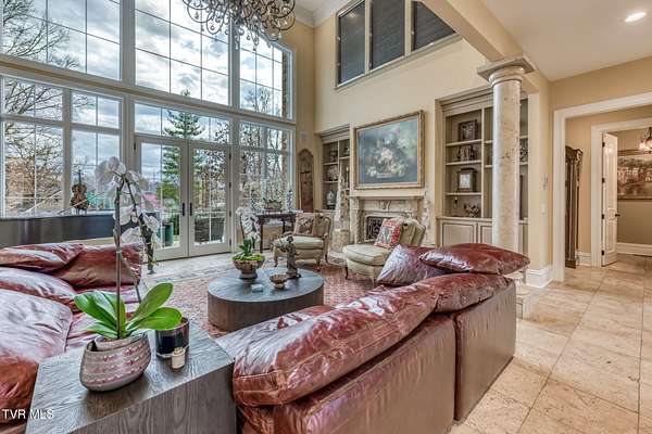 Welcome to a truly exceptional custom estate in the gated community of The Reserve at Leonard Farms--one of Bristol's most prestigious addresses. Set on approximately 1.5 acres with mountain views and stunning sunsets, this nearly 13,700 sq ft, four-level residence blends grand architecture, designer finishes, and resort-style living--all just minutes from Bristol's top amenities. From soaring ceilings and curated interiors to unmatched indoor-outdoor entertaining, this home delivers turnkey luxury at every level. Property Highlights: ~12,417 sq ft of finished living space plus 1,275 sq ft of climate-controlled garage ~7 climate-controlled garages + RV hookup (up to 13-car capacity with lifts) ~Private elevator connecting all levels ~Chef's kitchen with Wolf range & Sub-Zero refrigeration, marble & leathered granite finishes ~2,200 sq ft primary suite with terrace, spa bath, steam shower & soaking tub ~5+ bedrooms | multiple en-suites | fitness room with views ~Full entertainment levels: theater, game lounge, wet bar, wine cellar ~Top-level flex space (ideal for golf simulator, sport court, or studio) ~Smart home features, a whole-home generator, and geothermal HVAC Outdoor & Lifestyle Features: ~15x40 saltwater pool with pool house/pavilion ~Expansive terraces with summer kitchen & mountain views ~Private pickleball court + basketball setup ~Professionally landscaped grounds with lighting & irrigation ~Gated community with a clubhouse, trails, creek access, community garden & golf access Schools: ~Zoned for Holston View Elementary School ~Tennessee Middle School & Tennessee High School ~Nearby private option: Sullins Academy ~Minutes to King University Prime Bristol Location: ~Minutes to Downtown Bristol, Exit 7 shopping & dining ~Near Hard Rock Hotel & Casino Bristol & Paramount Center for the Arts ~Close to Bristol Motor Speedway & Tri-Cities Airport ~Access to outdoor destinations like South Holston Lake and regional trails Why Bristol: ~''Birthplace of Country Music'' heritage and vibrant arts scene ~Top-tier golf including The Virginian & Olde Farm ~Outdoor lifestyle with lakes, rivers, and trails ~No state income tax in Tennessee A rare opportunity to own a private, resort-caliber estate offering scale, privacy, and proximity--designed for elevated everyday living and unforgettable entertaining. Buyer/Buyer's Agent to verify all details. For more information,