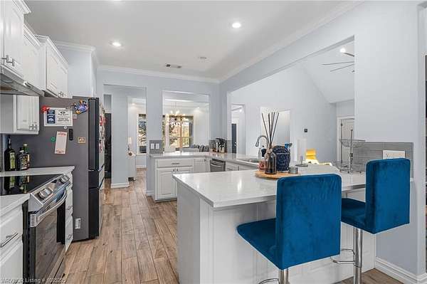 Beautifully updated 3 bedroom, 2.5 bath total electric home with office located on 2.06 acres on the South Side of Fort Smith! This home features so many thoughtful details including an open floor plan with a formal dining room, eat-in kitchen and breakfast bar, dog wash in the laundry room and 2 unfinished rooms upstairs with the plumbing roughed in which could be easily finished out for additional square footage if needed. Quartz on bar in eat-in kitchen to be installed next month.
