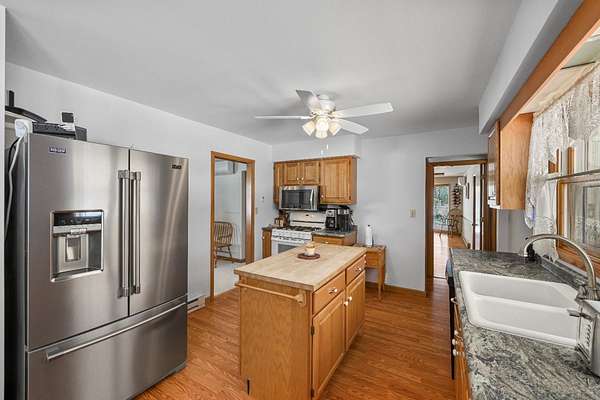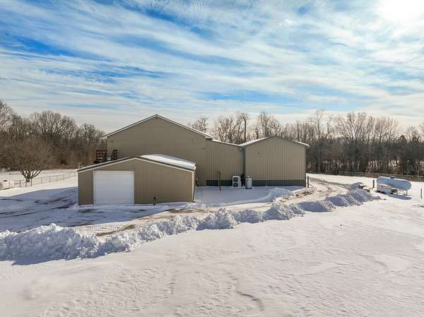 What a rare and versatile property designed for today's modern lifestyle, offering the perfect blend of home, work, and multi-generational living. Situated on 2.5 peaceful acres, this property provides privacy, functionality, and room to grow. The spacious ranch-style home features convenient one-level living, while the fully finished walk-out basement offers a second kitchen, full bath, laundry, and bright living space with direct backyard accessideal for extended family, guests, or independent living. Outside, enjoy the serenity of country life with space for gardening, recreation, or relaxation. Just steps away, the impressive, fully functional shop features multiple bays, tall ceilings suitable for a lift, and dedicated office space, making it perfect for business use, hobbyists, or collectors. This exceptional property offers a rare opportunity to live, work, and thrive all in one location.