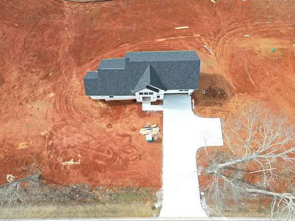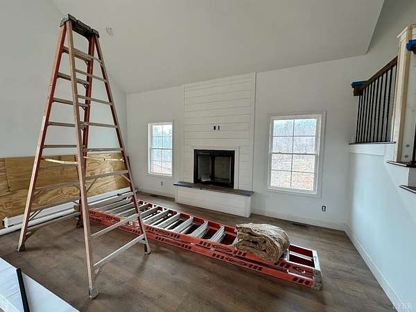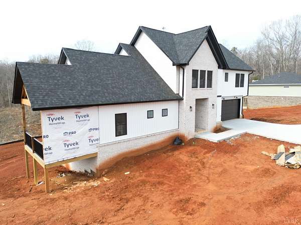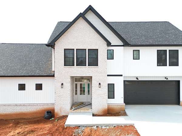 Experience luxurious living in this stunning two-story home, perfectly situated on a spacious 1.78-acre lot. Featuring an eye-catching combination of brick and vinyl siding with sleek black windows, this residence offers exceptional curb appeal. Step inside to a bright, open main level, highlighted by soaring vaulted ceilings in the kitchen and living room. The gourmet kitchen boasts leathered quartz countertops, a stylish tile backsplash, stainless steel appliances, and pantry! Sleek black sliding doors open to the side porch with fireplace! Also a main level dedicated office and a half bath, and spacious drop zone. Upstairs, you'll find a laundry room for added convenience and three spacious bedrooms, including a grand primary suite with a vaulted ceilinged walk in closet. Indulge in the spa-inspired en suite bath featuring a soaking tub, large tile shower. The finished basement offers an additional bedroom, full bath and living space. This one of a kind home won't last long!