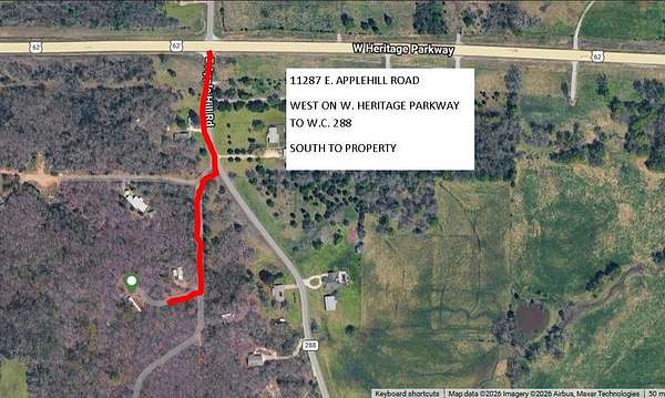 Take Heritage Parkway south past the third stoplight. Turn left onto CR 288 (Applehill Rd), 1/4 mile turn right to 11287 Applehill Rd.