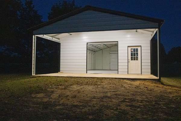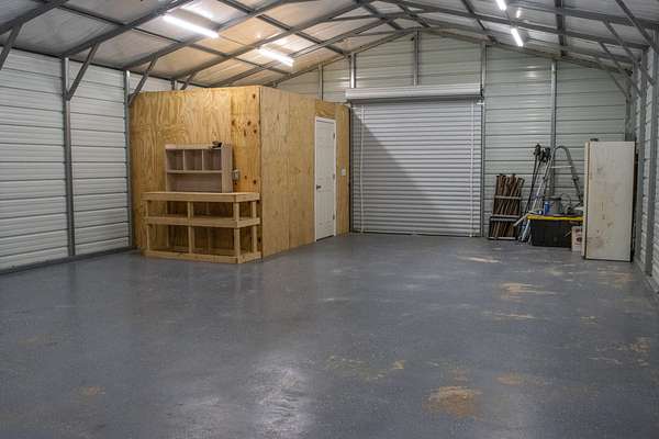 Added in 2022, this impressive 24x50 permitted metal building features full electrical service, including a 240-volt outlet and multiple 120-volt outlets to accommodate all your power needs. Enjoy the convenience of a 10-foot covered porch and a driveway that connects directly to Old Tar Road. Inside, you'll find a dedicated office space perfect for work or hobbies. The building is also equipped with water service, complete with a retractable hose for easy access.