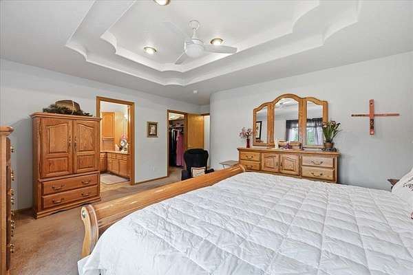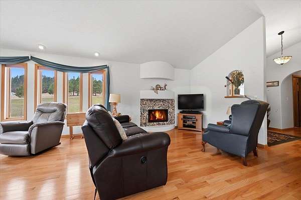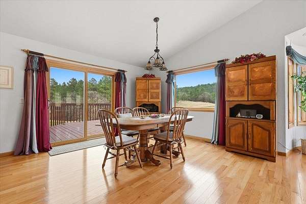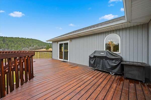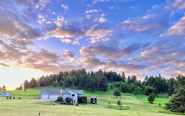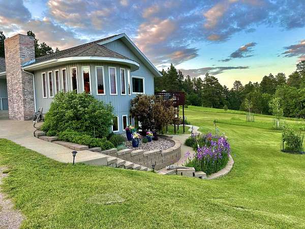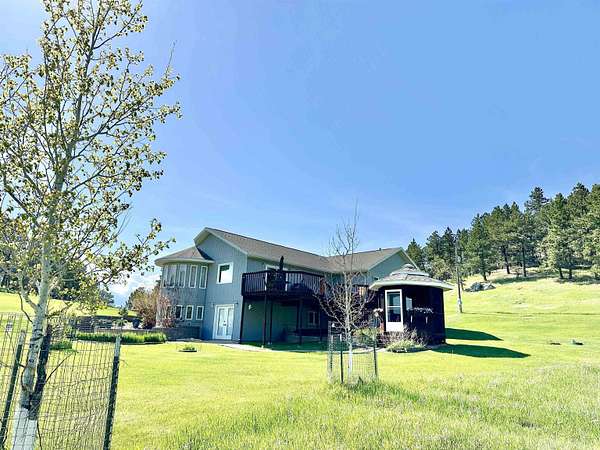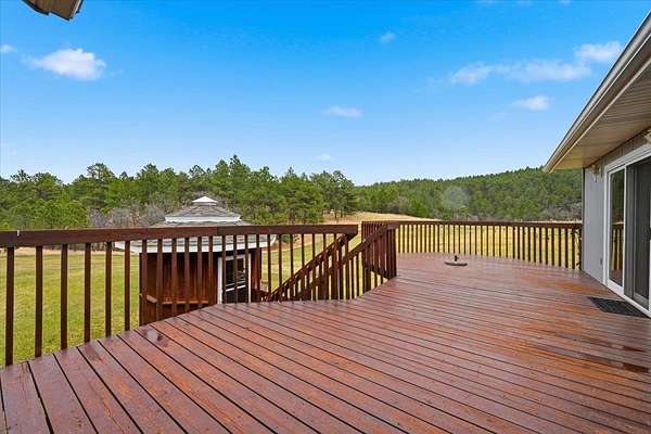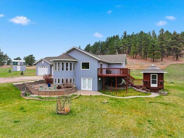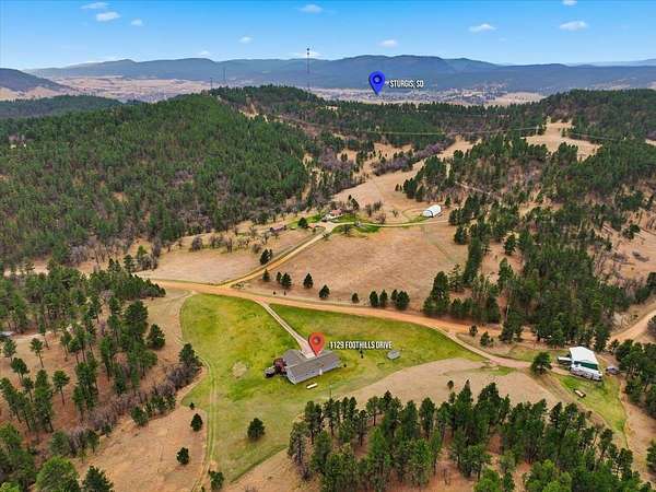 Welcome home to 1129 Foothills Drive sitting on 10 acres (that allows horses!) just north of Sturgis. Enjoy the peace and quiet of country life, while still enjoying the convenience of a 10 minutes trip to the grocery store. This custom built home features tree bedrooms on the main level, an attached three car garage, fully finished walk out basement, and a 10 acre parcel that is the ideal mix of meadow and mature pines. Originally built in 1998, the kitchen was remodeled in 2014 featuring custom cabinets, a breakfast bar, and solid oak flooring that extends from the kitchen throughout the common area living space of the main level. The primary suite offers a walk in closet, divided his and her sinks, and walk in shower. Downstairs, you will find a large family room, complete with a wet bar, a fourth bedroom with walk-in closet offering the same square footage as the primary suite, and so much storage! A deck of the dining room and gazebo offer outdoor living space for you and your loved ones to enjoy the beautiful 10 acre setting. This home enjoys a well share with two other homes for a well tapping into the Minnelusa aquifer. Additionally, this home has a whole house water filter and softener. If you are looking for space, both inside and out, this home is ready for you to become its new owner.