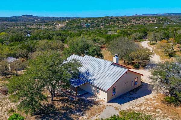 Est $3,461/moHard to find 6 unrestricted acres in the heart of the Texas Hill Country. This property boasts a well kept 1900 sf home, storage containers and an adorable garden area and greenhouse. Property has a water well as a backup water source and rainwater collection for primary use. Honey Bees can be added for agricultural exemption. Excellent views, wildlife and beautiful oak trees. New property owner can use honey bees for an agricultural exemption.