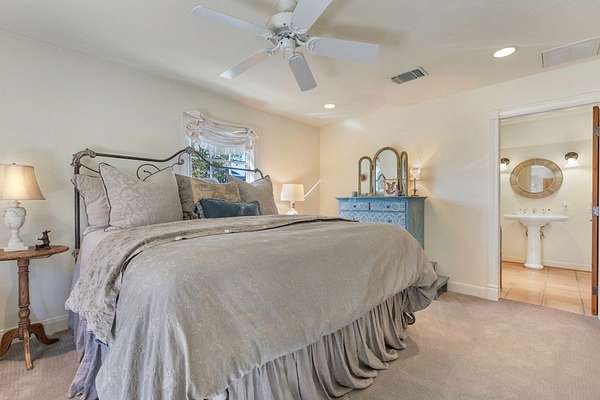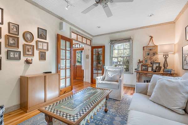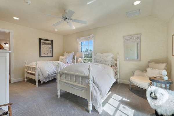 Introducing, for the first time to the market, this exceptional Hill Country retreat set on 37.7 pristine, sub-dividable acres in the highly desirable country neighborhood - Triple Creek Ranch. The approach to this property is simply lovely as you wind along a scenic Hill Country road bordered by charming neighboring homes, cross the creek, then follow the quiet road to reach the homestead tucked beneath mature trees and situated in the cul-de-sac. Designed by Richard Laughlin to evoke the character of an old farmhouse with a sophisticated modern addition, the home showcases impeccable craftsmanship and professional interior design - Amish hand-hewn, floating-structured beams from Pennsylvania frame the living room, an acclaimed Mick De Giulio designed kitchen elevates the cooking experience with elegant ergonomic functionality, and dramatic floor-to-ceiling stone fireplaces in both the living room and the primary suite anchor these spaces with rustic grandeur. The main residence has 3-bedrooms, 2.5-bathrooms and there is a guest house with its own kitchen, laundry & living space, offering comfortable accommodation for friends and family. The primary suite is sumptuous & spacious with a gorgeous en-suite bathroom and access to a private screened-in porch. The other two bedrooms and bathroom are upstairs and each room is well-appointed with its own unique character. The kitchen is a central point serving both a formal dining room and a more casual dining area for intimate dinners, hearty breakfasts or easy lunches. The living room is stunning with its magnificent fireplace and sheer volume of space which is brightened by an all-around window design (new Kolbe windows have been installed throughout the house). The Mackenzie Childs' styled 1/2 bathroom adds a touch of whimsy and artistry and there is also a separate, versatile room downstairs which can be 'whatever one wants it to be' - study, home office, or cosy sport-watching, movie-indulging space. A full sound system runs throughout the inside of the home and feeds to the screened back porch and lovely outdoor terrace for dining under the stars. There is an additional storage room beneath the home providing space for equipment or seasonal items and an oversized detached 3-car garage with several storage spaces. Landscape lighting traces the home's exterior at night, creating a warm, welcoming glow that highlights the stonework and ageless architecture. A sprinkler and drip irrigation system service the beautifully maintained back garden and beds around the house. Additional features include a Chubb security system, a fire-fighter grade water access hose, 3 water wells, a 5,000-gallon storage tank, and a full-property Generac generator. There is also a 648 sqft workshop or barn for farming equipment/extra storage. One of the property's defining natural assets is the strong bio-diversity of the trees. Diversity protects a property from any one pathogen (like Oak Wilt) from impacting the forest entirely. All oak wilt has been professionally treated on this property, ensuring the long-term health of the landscape. With approx. 1,070 feet of Marshall Creek frontage, complete with its own dam, the land provides a gorgeous natural backdrop and wildlife in abundance. The agricultural exemption adds long-term value; additionally a new owner has the choice to sell off separate parcels of land as follows : 6.19 acres (Lot 9C), 14.34 acres (Lot 11A), 5.01 acres (Lot 11D). This private, exclusive location is just 5 minutes from downtown Fredericksburg, 10 minutes from all private & public school campuses, HEB grocery shopping, Wellness Centre, Methodist Hospital & medical offices. Every element of this remarkable property - from its superior craftsmanship and professional design to its land stewardship and premier location - reflects a commitment to quality, beauty, and comfort - a true Hill Country haven, ready to be cherished for generations.