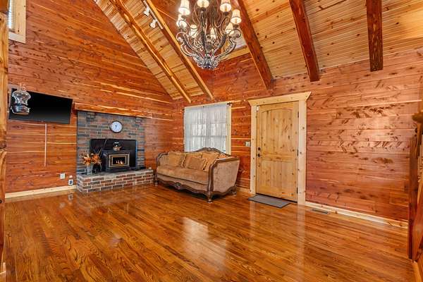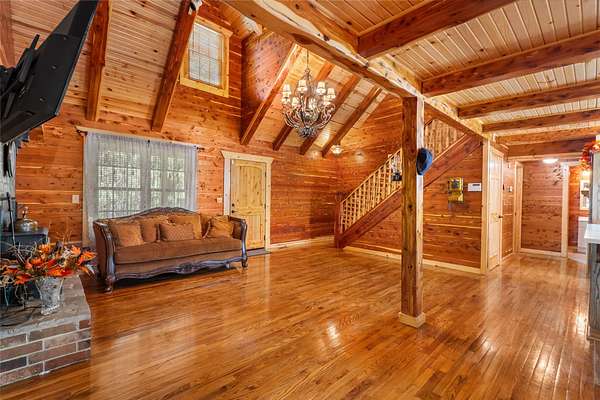Head west on Highway 60 toward Republic, then turn left onto Highway 37 toward Cassville. Turn left onto Highway C toward Purdy, then right onto Farm Road 1100. From there, turn left onto Farm Road 2085 and follow it until you reach the home on the right.