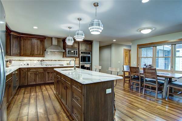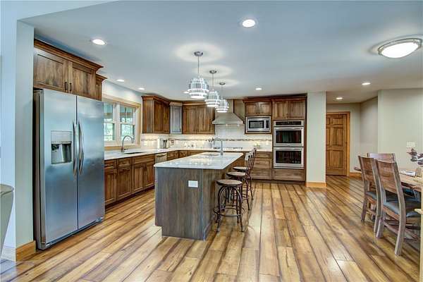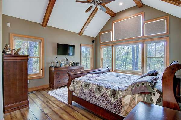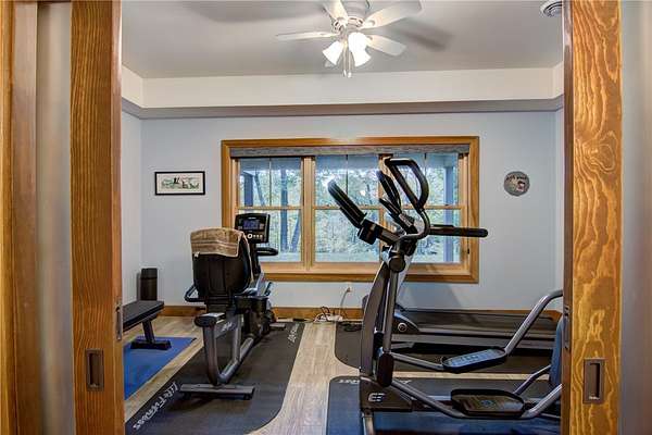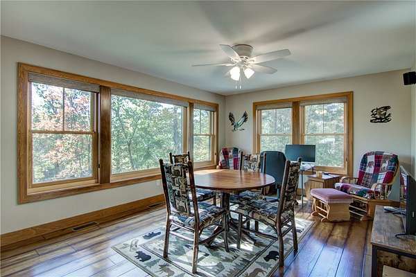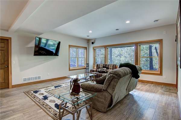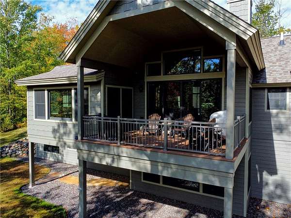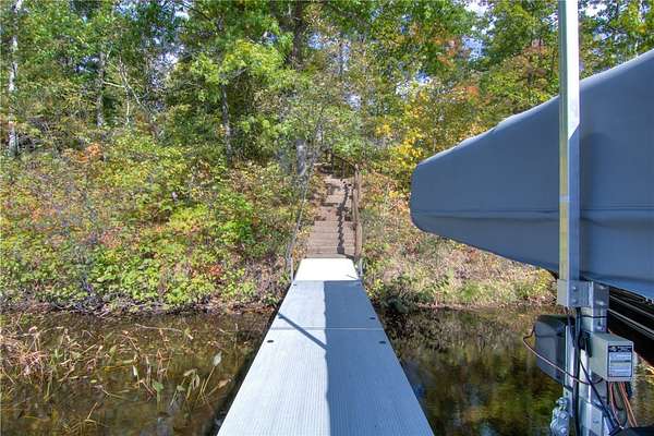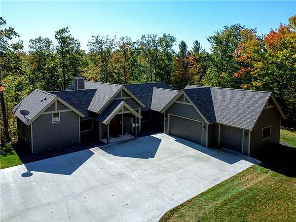 Like new waterfront w/privacy & seclusion at the end of a 1/2 mile gravel road. Situated on a wooded 1.82 acre lot w/243 feet of frontage on the Tiger Cat Flowage. Boat access to Upper Twin, Lower Twin, McClaine, Burns, & Placid Lakes. Extreme low maintenance zero entry home. Open concept living on the main floor. Kitchen has maple cabinets, Cambria tops, tile bs, gas cook top, double wall ovens, 2 sinks, island, & a panty. Living room has a real stone fireplace, vaulted & coffered ceiling, & 9 ft double patio door leading to the gorgeous covered back patio. Primary suite has a huge walk in closet, vaulted & coffered ceilings, power blinds, & bathroom w/double sink vanity & walk in tile shower. 3 bedrooms have their own full bathrooms. Spacious 1st floor laundry/mudroom. Large 4 season sunroom. Rustic hardwood floors on most of the main level. Walkout lower level has family room w/wet bar & exercise room. Finished 3 car garage. Anderson windows. Gradual hardscaped walkway to the water