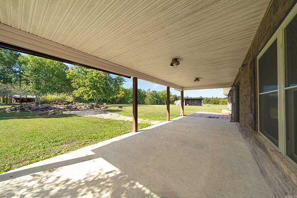 Spacious Country Living Just Minutes from Town! Welcome to your dream home in the heart of the beautiful Ouachita Mountains, just outside the charming town of Mena! This stunning 3-bedroom, 2.5-bath home offers the perfect blend of comfort, style, and space -- all on 6 fully cleared and meticulously maintained acres. Step inside to discover a bright and open layout featuring:A large, beautifully tiled living room perfect for relaxing or entertaining. A spacious kitchen with granite countertops and a dedicated dining area.A massive multi-purpose room ideal for a home office, game room, den, or all of the above.A huge walk-in closet and stylish finishes throughout.Fresh interior paint and a brand new roof for peace of mind.You'll love the 4-car drive-through garage -- fully heated and cooled -- with a convenient laundry area and plenty of space for your vehicles, workshop, or hobbies. Step outside and enjoy: A covered patio perfect for morning coffee or evening gatherings, A tranquil waterfall feature that adds a touch of serenityA storage shed ideal for mowers, tractors, ATVs, or whatever you need. Wide-open, level acreage with endless possibilities -- all just minutes from town.