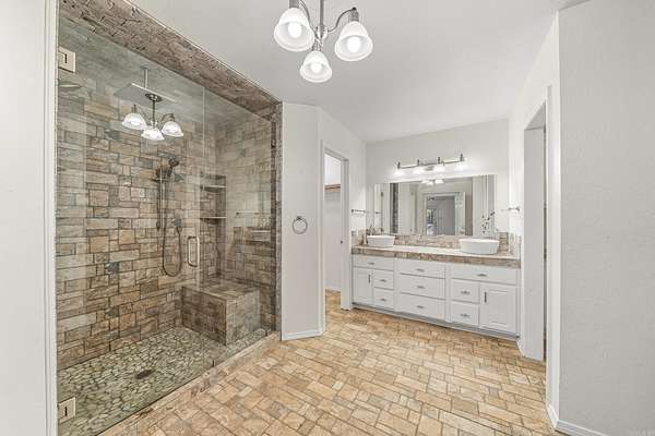 - Breakfast Bar, Built-Ins, Ceiling Fan(s), Dryer Connection-Electric, Granite Slab Kit Counter, Walk-In Closet(s), Walk-In Shower, Washer Connection