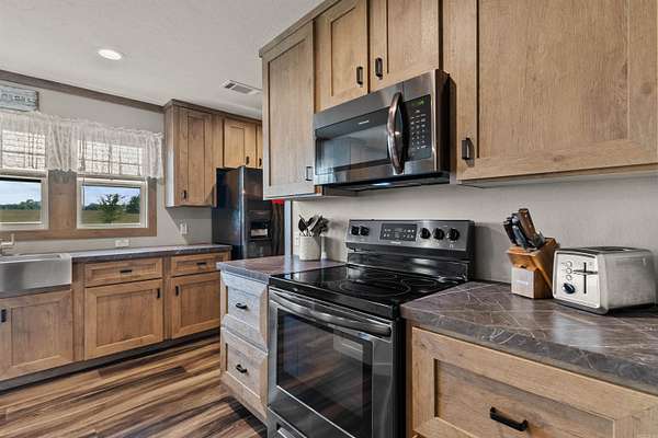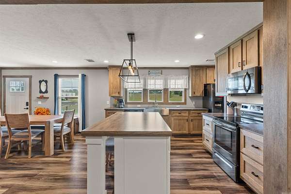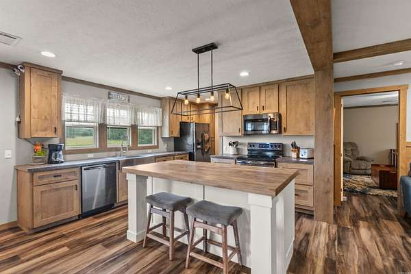 This property is perfect for those who value both modern comfort and a peaceful, scenic lifestyle. Built in 2020, this 4-bedroom, 2-bathroom home offers over 2,184 square feet of thoughtfully designed living space with two inviting living areas. The open dining, kitchen, and living space features beautiful flooring, upgraded fixtures, a large farm sink, and plenty of natural light, making it ideal for entertaining. The primary suite is a true retreat with a luxurious soaker tub and spacious layout, while the additional bedrooms and large laundry room ensure convenience for the whole family. Outside, enjoy the beauty of five stunning acres that back up to trees, offering room to roam, explore, and relax. A pole barn provides ample storage for farm equipment or outdoor toys, and the brand-new storm shelter in the shop adds peace of mind. Whether you're unwinding on the porch, tending to your land, or gathering with friends and family, this home perfectly balances country charm and modern convenience. Don't miss the chance to make this exceptional property yours--schedule your showing today!