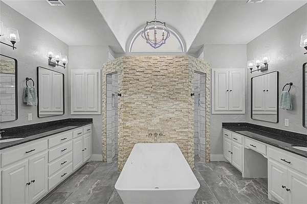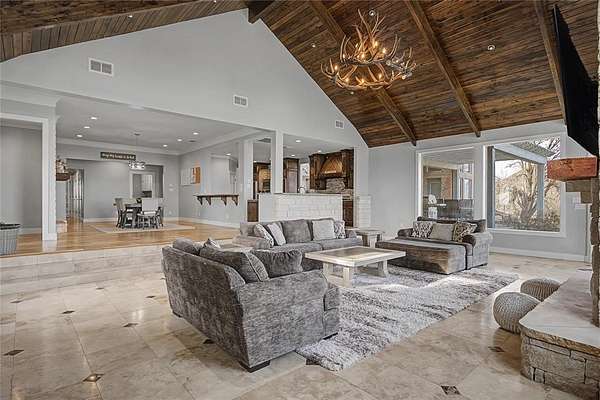 - Built-In Features, Built-In Wine Cooler, Cathedral Ceiling(s), Chandelier, Decorative Lighting, Double Vanity, Eat-In Kitchen, Flat Screen Wiring, Granite Counters, High Speed Internet Available, Kitchen Island, Loft, Multiple Staircases, Natural Woodwork, Open Floorplan, Pantry, Sound System Wiring, Vaulted Ceiling(s), Walk-In Closet(s)