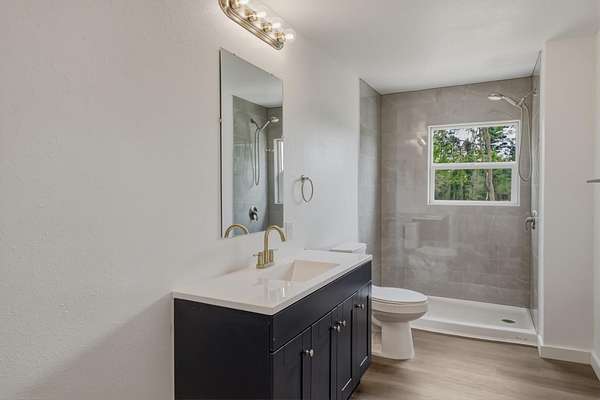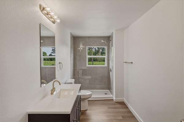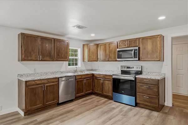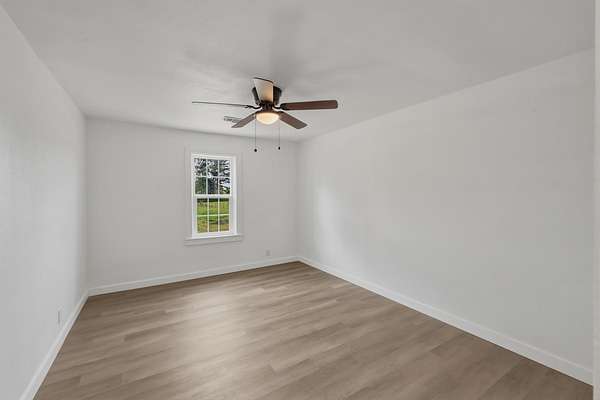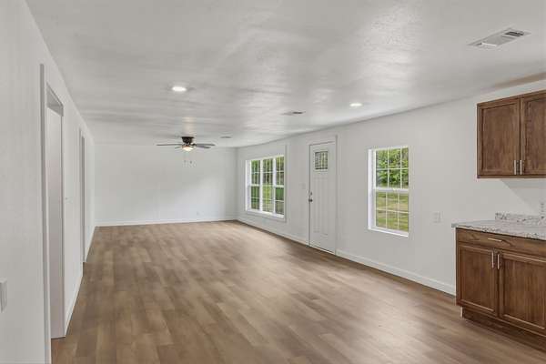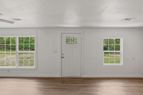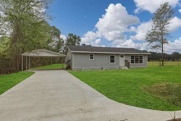 This beautifully updated, 3br/1ba home has 1400sf and sits on 2 acres. The home features a large kitchen, huge living room and a large bathroom. In the kitchen, you will find custom cabinets, new stainless steel appliances and plenty of counter-top space for all your cooking needs. The living room features large windows for tons of natural light and plenty of room for family/friends. In the bathroom, you will find a large tiled walk in shower (handicap accessible), new toilet and a new vanity. Other features of the home are new flooring through out, all new plumbing, new main electric panel (200amp), new windows, new water heater, new HVAC, new doors, new roof (with reinforced trusses and gables), a new aerobic system and a new concrete driveway. The home is on Bi County water but there is a shallow well for watering.