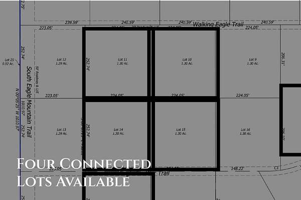 Elevate your vision at 113 Eagle Pine, a stunning 1.3-acre lot in the elite Eagle Mountain Phase 4. A tranquil creek flows through mature pines and verdant terrain, hosting beautiful deer, crafting a natural masterpiece. As part of a distinctive square with 92 Eagle Nest, 54 Eagle Nest, and 71 Eagle Pine, this lot offers a rare opportunity to create 'sister' rentals for flexible bookings- separately or together- or to forge a family compound where friends and family can reside side by side, a premier choice for investors and legacy builders.