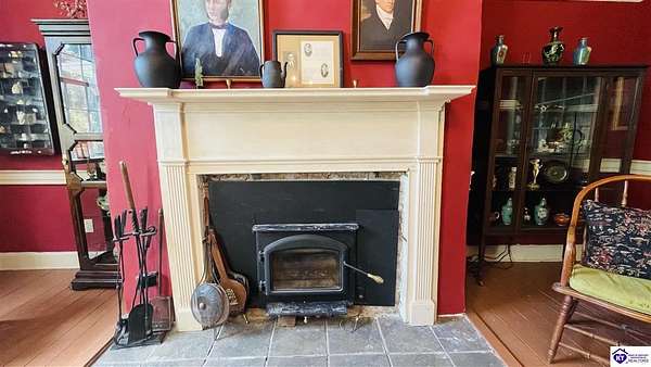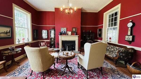 HISTORICAL BEAUTY! This unique John Barrett home was built in 1815 with 2872 sq feet and host so much character and history and sitting on 6.27 acres. Upon entering the front of the home you will notice there are 2 access points, when entering into the main entrance your entering into the foyer with the main stairwell to the living quarters, the parlor (sitting room), to the right of the entrance you will be in the large formal dining room, access the the kitchen area, laundry and full bath and formal living room, just off the dining area you will have another stairwell that is known as the back stairs that will access you to the master bedroom. Upstairs also host 2 additional bedrooms, bath and a sitting area. All fireplaces are original to the home besides one that has been repaired and corrected , original flooring throughout most of the home, wide doorways and large windows for that natural lighting. 1 Car detached garage with living space above. Sitting on the acreage is Barrett Cemetery, there is an additional .47 acre lot that also is with the property, that can be separated out. All date appears correct but to be verified by buyer.