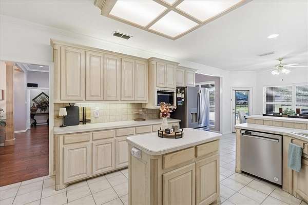 Inside, you'll find an inviting open floor plan that's perfect for both everyday living and entertaining. The spacious layout offers a seamless flow between the living, kitchen, and dining areas, while still maintaining warmth and character. Fresh new interior paint throughout provides a crisp, clean canvas ready for your personal style. Thoughtful details like built-in cabinetry, a water softening system, and abundant natural light add both function and comfort. Each bedroom enjoys direct access to a full bathroom, giving every family member their own private retreat.
