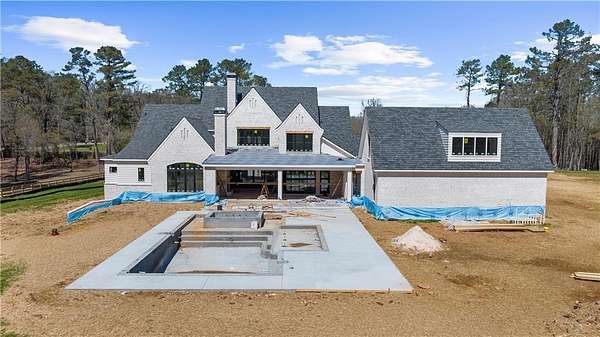 Unparalleled English Country Manor built by Jason Hipps Homes nestled on 5.6 acres! Timeless open floor plan featuring 6br 6.5ba, 6 car garage with motor court and elevator ready servicing all three levels! Grand entryway leads into a massive great room with three metal sliding doors overflowing with natural light and stack stone fireplace. Owners suite on main, private spa like bathroom with his and hers walk-in closets, his and hers bathrooms, stunning frameless glass shower with separate soaking tub. Guest suite on main with full bathroom. Gorgeous designer kitchen with wolf & sub-zero appliances, quartz countertops, oversized island, wooden beams, custom inset cabinetry and back catering kitchen ideal for entertaining. Porte cochere entrance leading into the mudroom with lockers! Expansive outdoor living area with stack stone gas fireplace, dining area, outdoor kitchen with grill, griddle and under counter refrigerator. Lush private backyard oasis featuring 25x46 heated salt water pebble tec pool with raised spa. Second level offers three large en-suite bedrooms, loft, and additional laundry room. Private entrance in-law suite with full bathroom and sitting area above garage. Terrace level awaiting your finishes! Could accommodate home theatre, wet bar, golf simulator, additional bedroom and home gym.