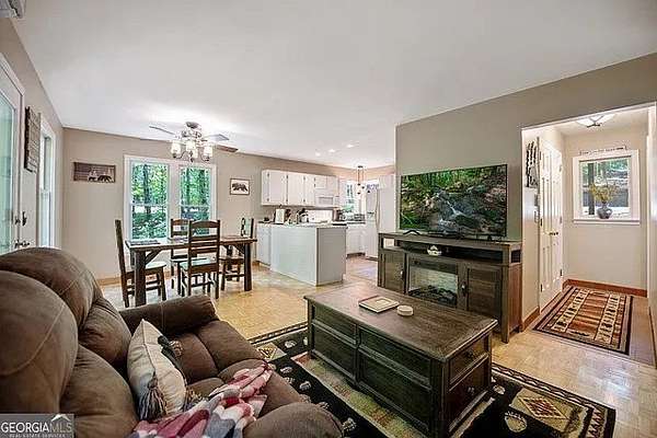 This charming one-bedroom, one-bathroom cottage is perfectly sized and located just outside of Ellijay, Georgia. The home features a screened front room that runs the entire length of the house, along with a back deck that overlooks a private, wooded backyard. For outdoor enjoyment, the property includes a fire pit, a hot tub, and a fenced side yard, as well as plenty of parking space for guests. The interior is designed for convenience, with the laundry located on the main floor. This home offers a great balance of comfort and a beautiful natural setting.