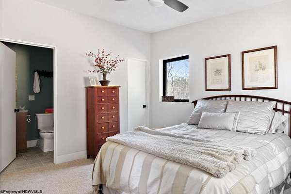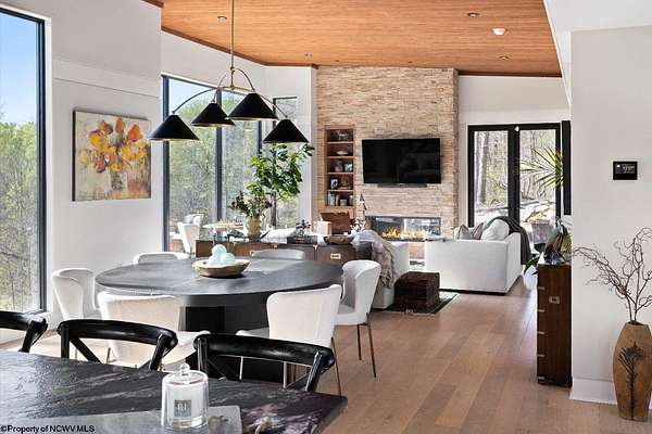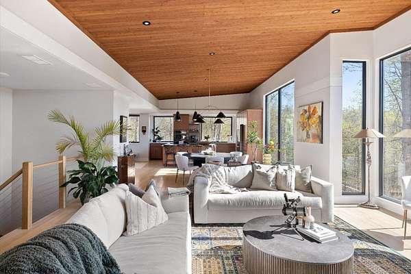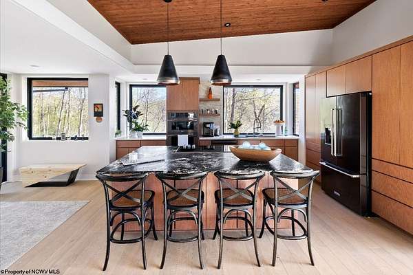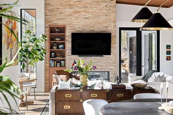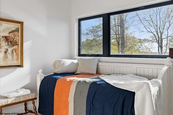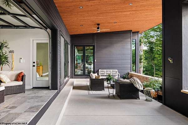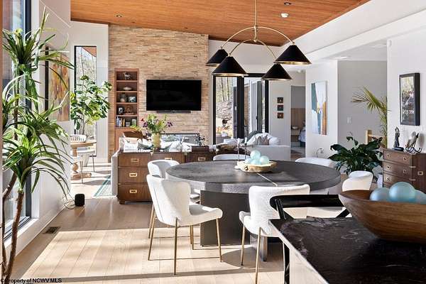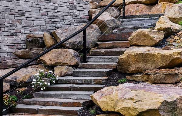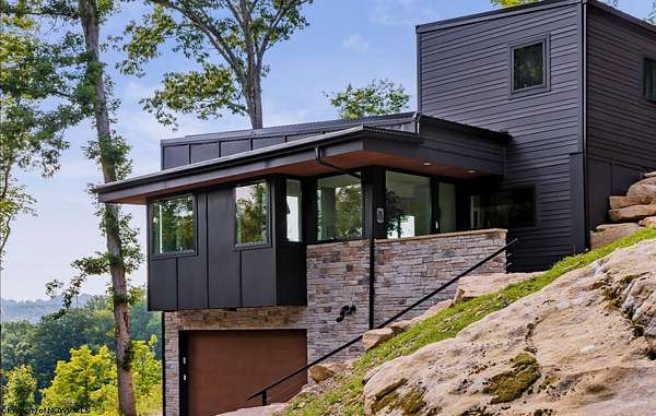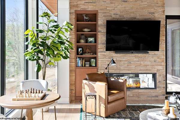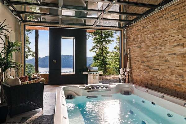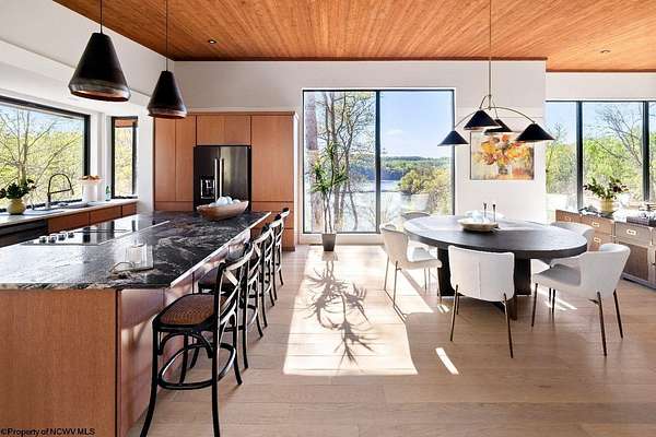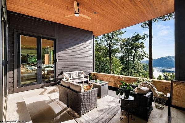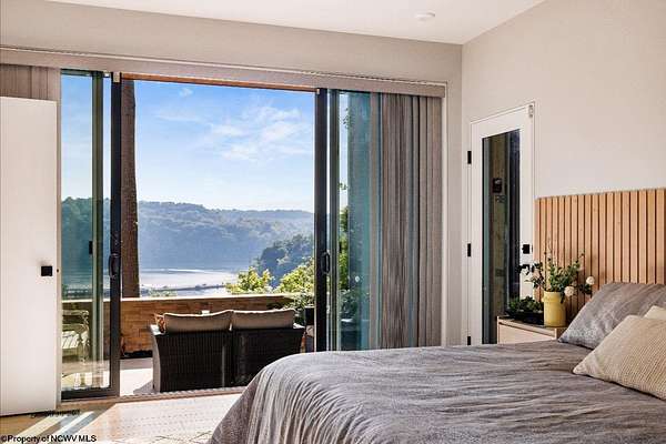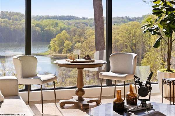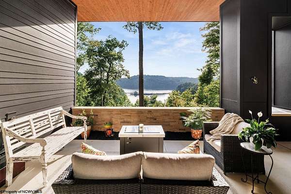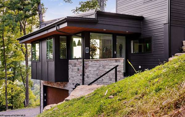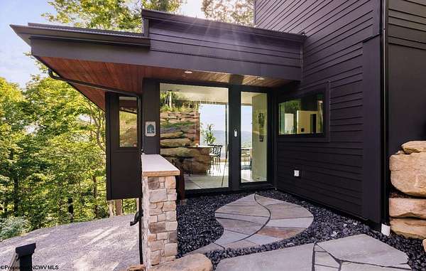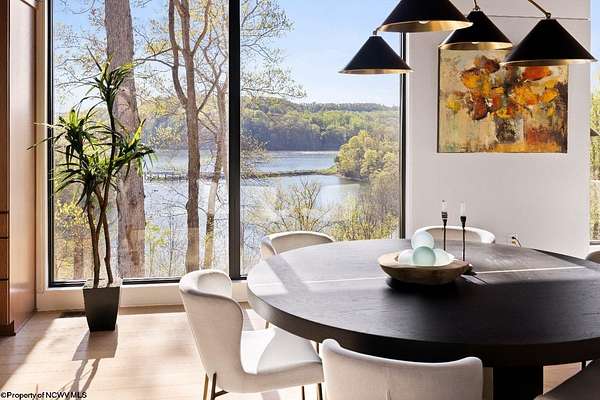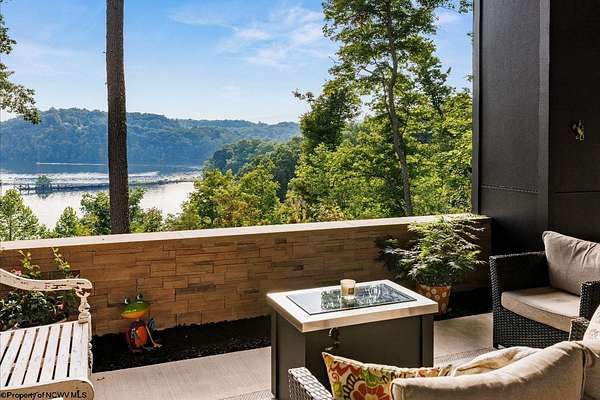 Enjoy resort-style living with tranquil, panoramic views of Cheat Lake and the Coopers Rock mountains. Built in harmony with the landscape, this architectural Gem makes use of stone and wood in a striking design that brings the outside in. The open-concept great room includes a modern, floor-to- ceiling stone fireplace, an ample dining area and a cook's kitchen appointed with Brazilian quartz surfaces, a substantial island, sleek custom cabinetry and built-in appliances. The wood ceiling exudes warmth and extends to the covered patio, which overlooks the lake and connects with the great room through a pair of glass doors. A luxurious retreat, the primary bedroom suite benefits from a wall of glass opening to the patio and direct access to a fabulous personal spa complete with sauna and Cal Spas swim spa. An all-glass overhead door encloses or opens the area for year- round enjoyment. Complete with generous accommodations for guests, additional amenities include solar panels, a pet washing station and a lower-level game room. Encompassing 1.84 +/- acres of partially wooded land, the property features an upper-level 35 x 75 multi-sport graded and landscaped area. For boating enthusiasts, one boat slip conveys with the property. Nearby recreational opportunities include kayaking, hiking, biking, golf, tennis and pickleball. This standout residence was designed by acclaimed architect Justin Cipriani, who has completed notable projects in Colorado and California. His awards include Best of Houzz Winner, 2020-2024, and Pittsburgh Magazine's Best Architect.