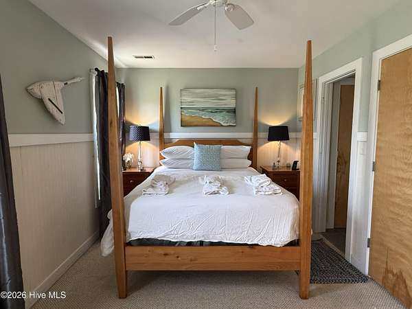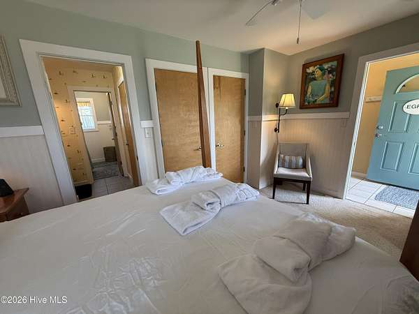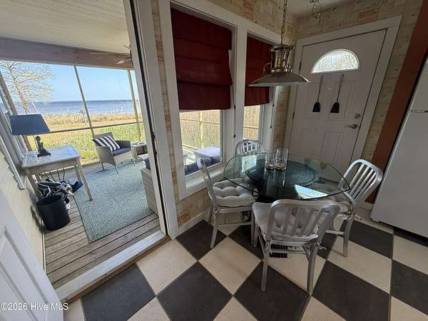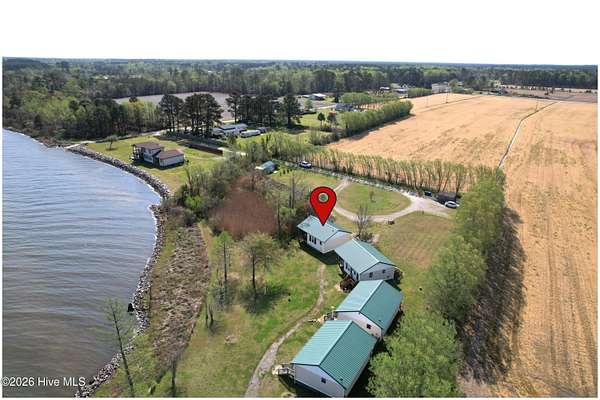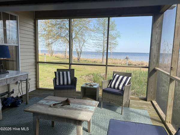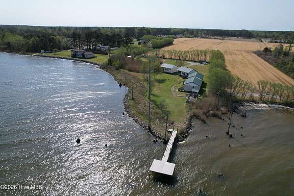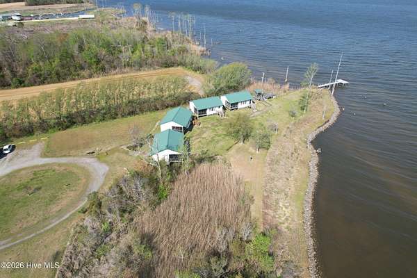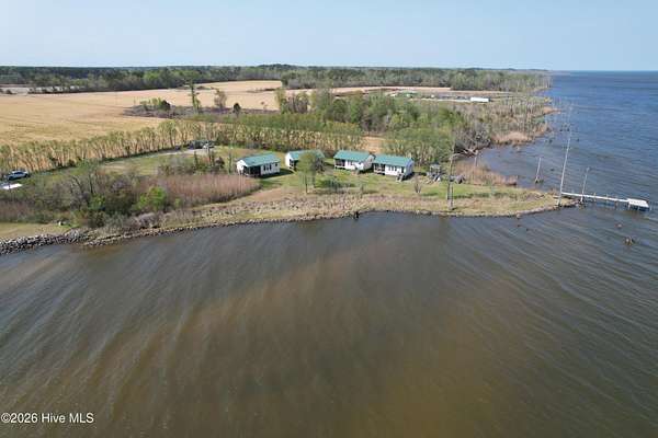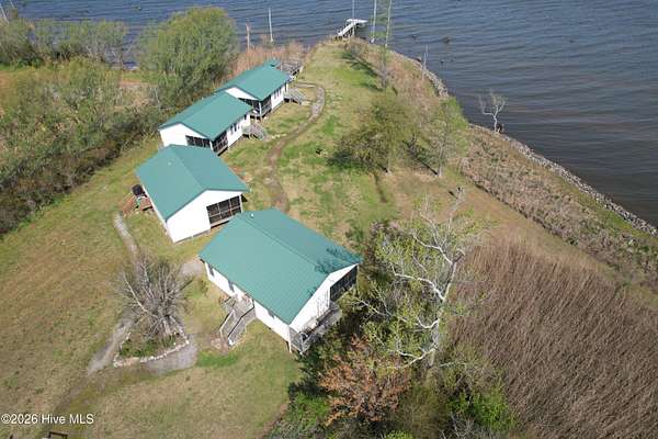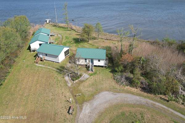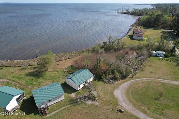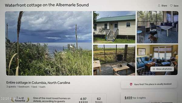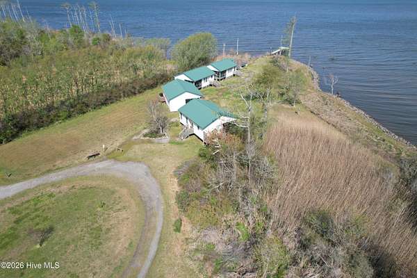 This small, peaceful cottage is tucked away along the calm shoreline of the Albemarle Sound, where the water stretches wide and the atmosphere feels unhurried and restorative! Compact, cozy and easy to maintain, it is perfect for a second home, vacation get-away, hunter or fisherman's paradise or Airbnb. The cottage, named the Egret, is already a well-established Airbnb with great ratings, which could provide instant income! Being sold FULLY FURNISHED so all you need to do is pack your bags! Simply designed with a single bedroom, a full bathroom, comfortable living room with pull-out couch for extra guests and a beautiful kitchen and dining area with open water views. Another great feature is a private screened porch! A perfect spot where you can sit with your morning coffee or afternoon meal while looking out over the water enjoying the kind of horizon that changes color at sunrise and sunset. Outside, the experience expands. The 1.7 acres contains the 4 cottages that share a common area. There's a deck for grilling, a pier for fishing and plenty of room to sit, relax and enjoy nature, sometimes even spotting dolphins moving through the sound. Several updates have been made recently including a new HVAC system in 2020, new appliances, and new screen on porch. The property includes a community well and septic and shared storage building. The HOA provides common area & driveway maintenance service, keeping it well maintained, along with updates to pier and whatever is needed. High speed Internet provided by Starlink. Despite its quiet, tucked away feel, it's still conveniently located just a short drive to town and less than 45 minutes to the iconic beaches of the Outer Banks!