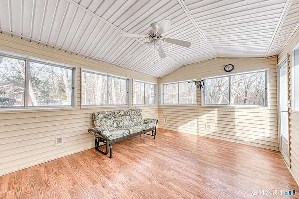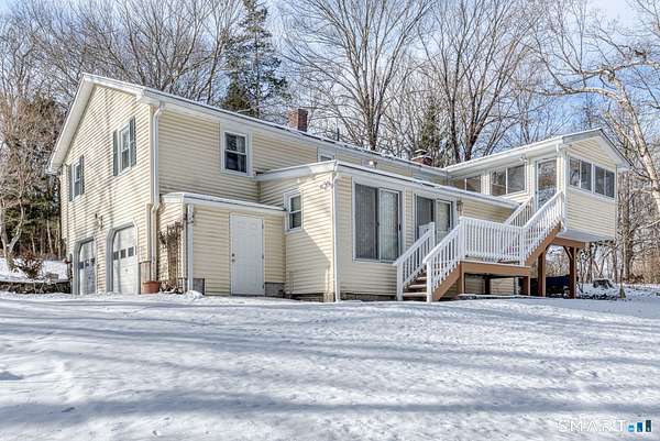 Set on nearly 2 acres of private, tree-lined land, this expansive home delivers space & flexibility - rooms to live, work, & entertain in. Unwind w/3 bedrms & 3-4 full baths. Adapts easily to changing needs, multigeneration living, or a dedicated home office setup. The sun filled foyer w/skylight welcomes you to the generous sized Living Rm overlooking the peaceful front yard. The Dining Rm flows seamlessly into the 3 season sunrm perfect for morning coffee, quiet evenings, or casual gatherings w/direct access to the back yard for entertaining, play, or simply enjoying nature. The eat in Kitchen is comfortable for daily living & meal prep, while the main level includes 3 well sized bedrms, full bath, & a Primary bedrm w/its own full bath & walk-in closet. Downstairs, the walk out lower level expands your option w/a home office, den, etc., full bath, & Family Rm w/a striking full brick fireplace. A cozy space for movie nights or game days. An additional recreation rm features a spa-style hot tub area w/skylight, sliders, sink & refrigerator creating a true at-home retreat. Outside the possibilities continue! The 1.95 acre property can accommodate a horse, animals, extensive gardening, or hobby farming. A 2-rm shed includes storage plus a heated space previously used as an art studio - perfect for creative pursuits, workshop, or a private escape. This is a home w/character, space, & endless potential - ready to evolve w/your lifestyle & to become truly your own!