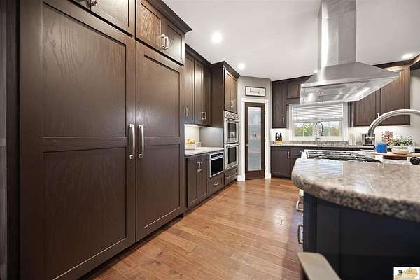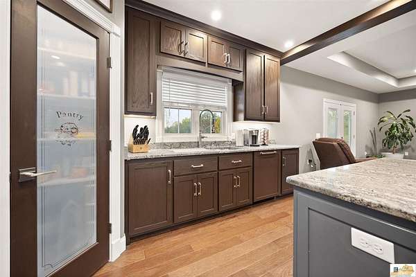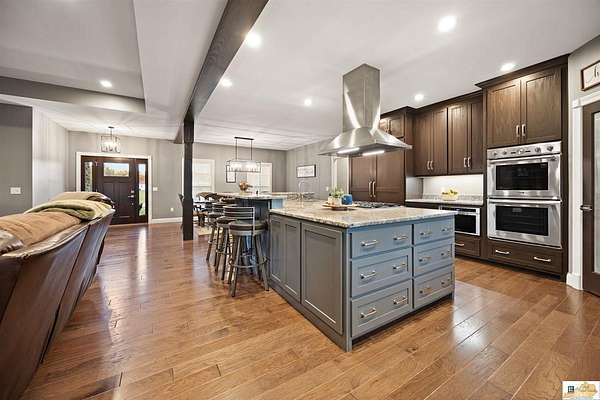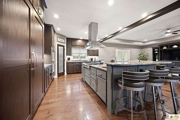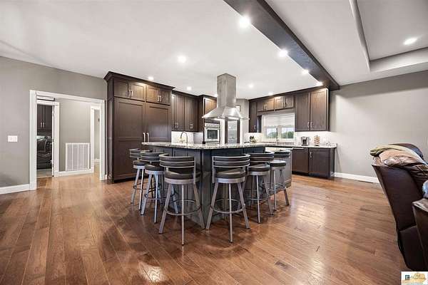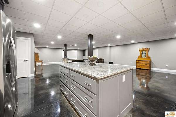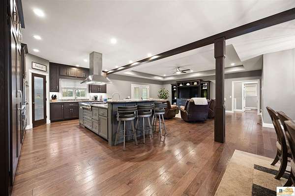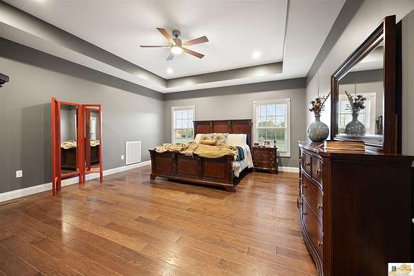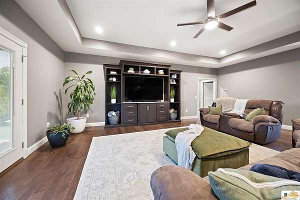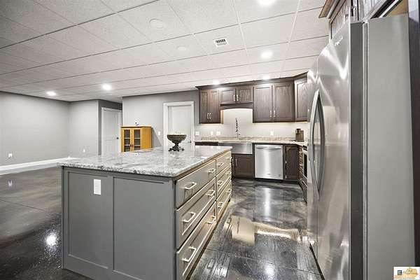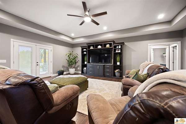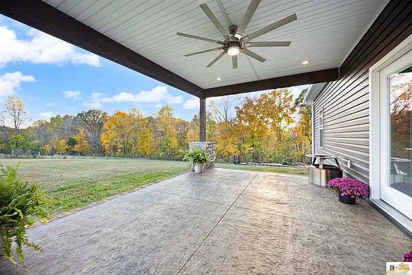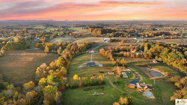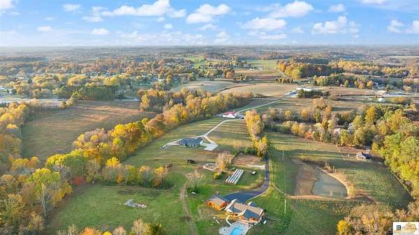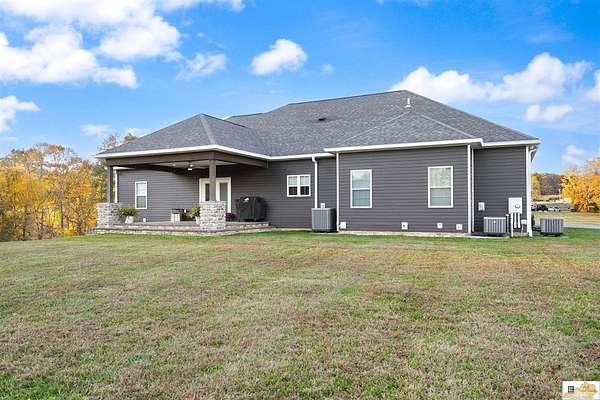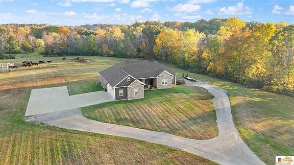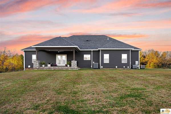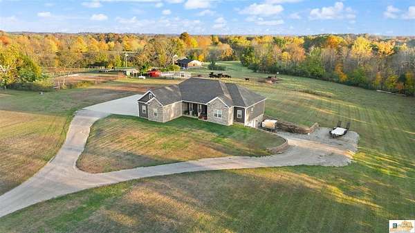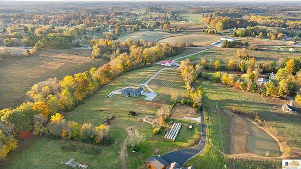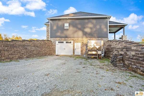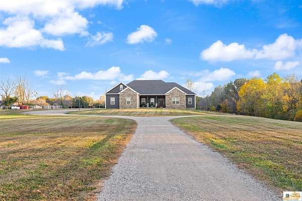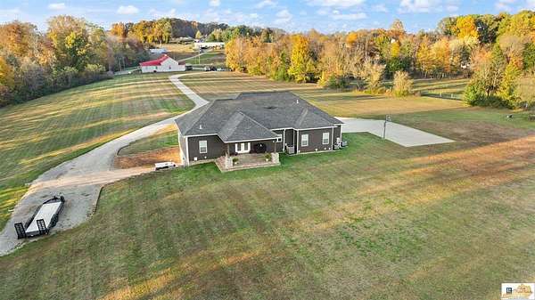 Experience modern luxury in this one-of-a-kind home located just minutes from Barren River Lake and downtown Glasgow-perfectly positioned outside city limits on 5.64 beautiful acres. This 5 bedroom, 4.5 bath custom-built residence combines thoughtful design, energy efficiency, and high-end finishes throughout. The main kitchen is a showstopper, featuring dual cabinet-panel refrigerators, a gas cooktop, double ovens, granite countertops, custom hardwood cabinetry, a large island, and a spacious pantry. The finished basement offers a full second kitchen-ideal for guests or entertaining. Elegant engineered hardwood and tile flooring flow throughout the home, with a luxurious tile walk-in shower in the primary suite. Every detail has been crafted for comfort and performance, including a PEX water system with two tankless water heaters, spray foam insulation, and three HVAC units for maximum efficiency. Additional features include a built-in home entertainment system, whole-home water filtration, and custom closet storage. Enjoy outdoor living on the covered back patio, complete with gas and water lines ready for your dream outdoor kitchen. Modern elegance meets functionality in this exceptional Glasgow home-offering privacy, space, and top-tier craftsmanship just minutes from the lake and town amenities.