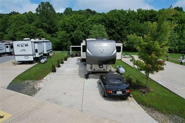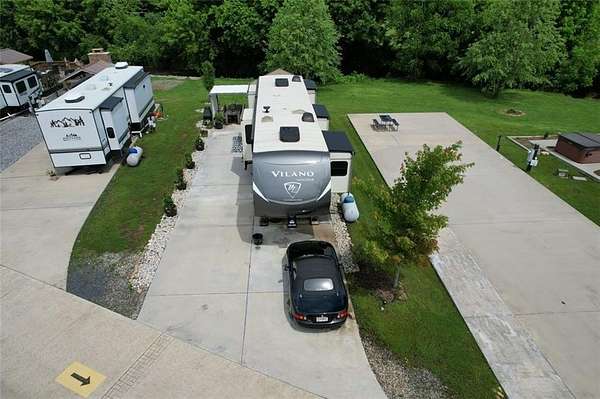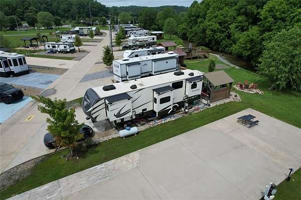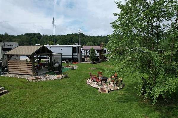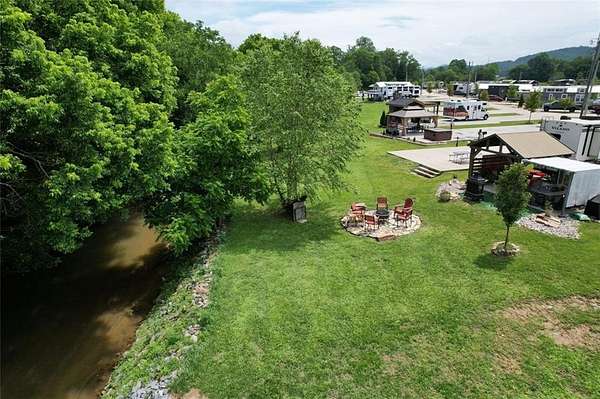 If you're dreaming of a peaceful spot by the water, this creekside RV lot might be just what you've been waiting for. Tucked along the banks of Hemptown Creek, it's a place where you can unwind, sip your coffee by the fire, fish on your property, and listen to the soothing sound of water flowing just steps away. The lot is beautifully landscaped and set up for outdoor enjoyment. There's a 21'x75' concrete pad that easily fits larger RVs or a tiny home, plus a gazebo with a fireplace-perfect for cool evenings or cozy conversations. A pergola extends the shaded outdoor space and invites you to enjoy meals outside, surrounded by the fresh mountain air. Closer to the creek, a fire pit seating area gives you a front-row seat to nature's soundtrack. Across the creek, a peaceful open pasture adds to the serene view. Whether you're looking to relax or entertain, the layout is functional, welcoming, and full of charm. Located in the gated Waterside at Blue Ridge community, you'll also enjoy amenities like a pool, clubhouse, playground, dog park, pickleball, disc golf, and more-all just minutes from downtown Blue Ridge and outdoor adventures galore. The area offers a lot of activities during all seasons - from tubing, boating, fishing, hiking, waterfall chasing to wine tasting, apple picking, train trips to the state line. Close to Lake Blue Ridge, Toccoa River, Toccoa Swinging Bridge, Aska Adventure area, Lake Nottely, multiple parks, Downtown Blue Ridge. This one's not just a lot-it's a mood.
