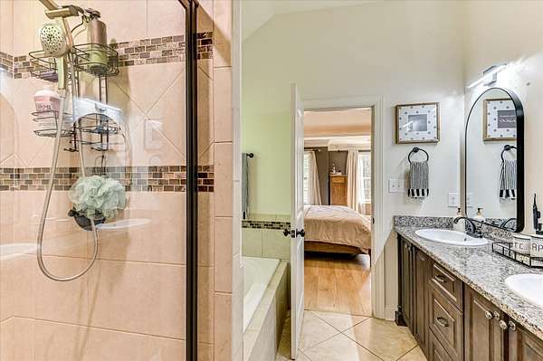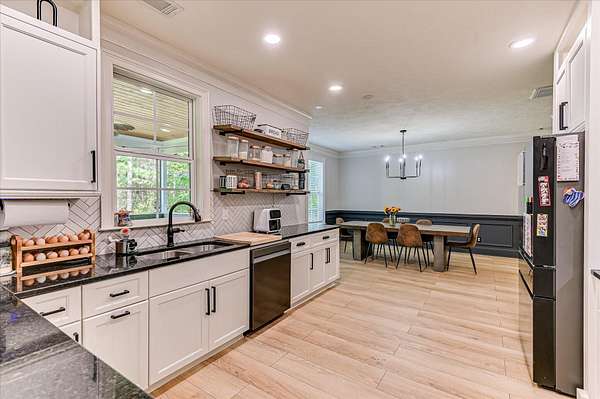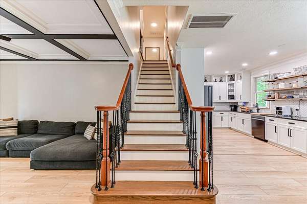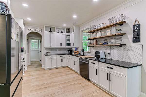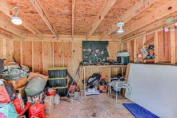 This two-story home sits on acreage and offers the perfect mix of space, function, and charm--inside and out. The fully fenced backyard is ready for whatever you need, with a chicken coop, mini barn, and plenty of room to spread out. Inside, you'll find all four bedrooms upstairs, including a spacious primary suite with vaulted ceilings, a walk-in closet, double sink vanity, jetted tub, and separate tile shower. One of the secondary bedrooms also features vaulted ceilings, a walk-in closet, and a board and batten accent wall. The hall bathroom is well-sized with a double sink vanity and granite countertops. Downstairs feels warm and inviting with a cozy fireplace that's been recently remodeled, plus a dining room just off the kitchen--perfect for everyday meals or hosting. The kitchen offers tons of cabinet space, granite countertops, newer appliances, a pantry, and easy access to the laundry room and half bath. Outside is where this property really stands out. In addition to the garage and carport, the backyard includes a small mother in law suite with storage underneath, plus an additional storage area under the house with electricity--ideal for hobbies, a workshop, or extra space. This one truly has room for it all--inside and out.
