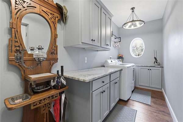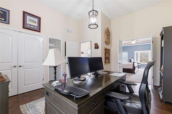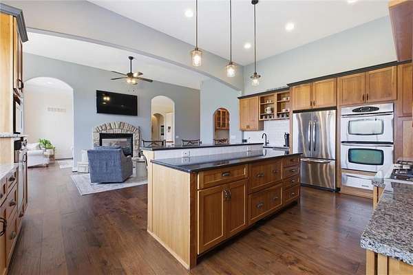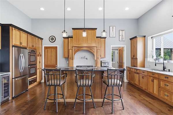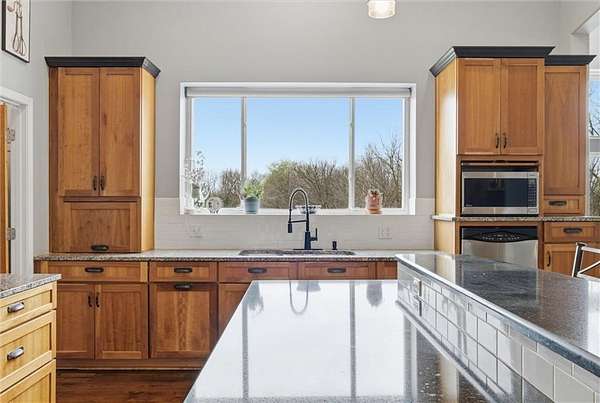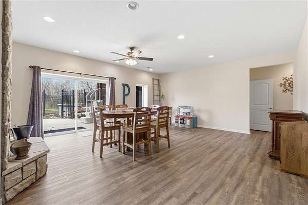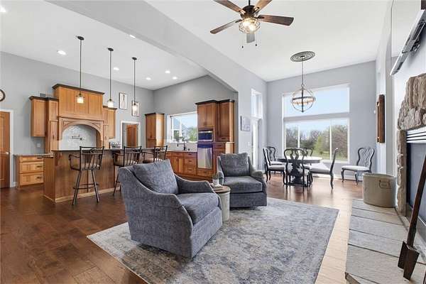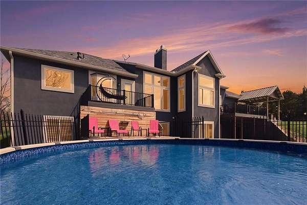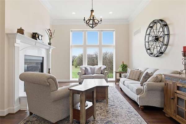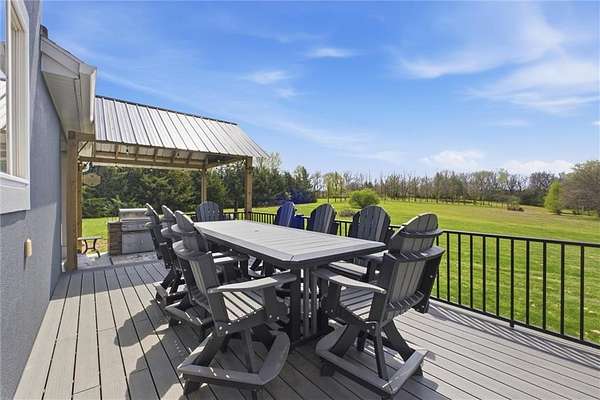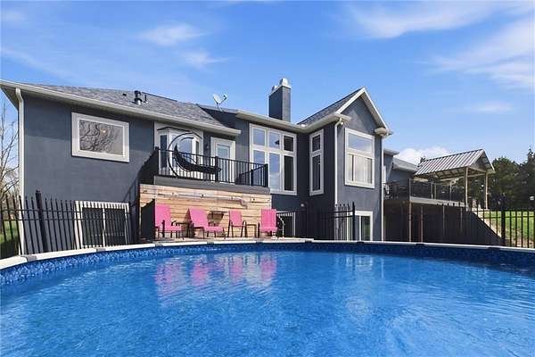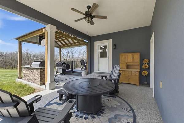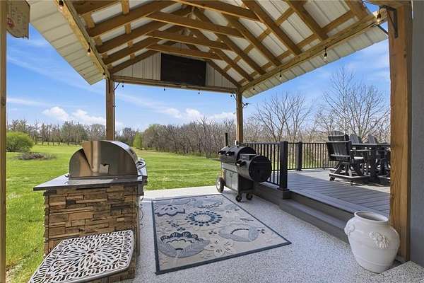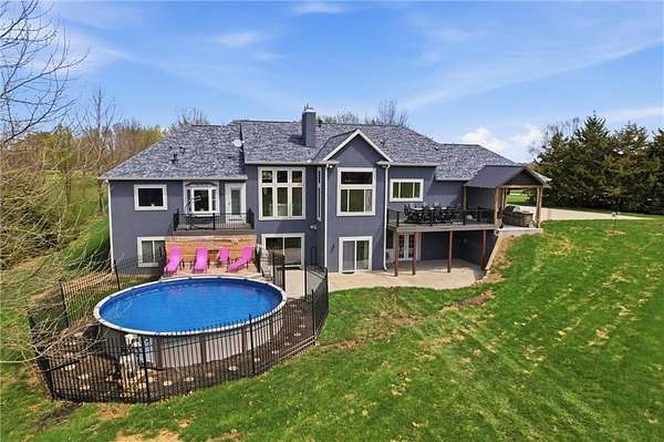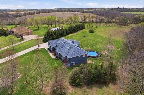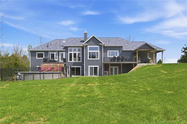 STOP SCROLLING-THIS IS "THE" ONE! A rare opportunity to own a fully upgraded, STUNNING, energy-efficient ICF estate home on 6.28 private acres just South of Lansing in Rock Creek West! This beauty features a picturesque front porch & inviting entry with soaring 12 ft ceilings, luxury finishes everywhere, HUGE space & privacy rarely found under $1M. Over $300K in recent updates, this home is truly move-in ready with elevated curb appeal from DAY ONE - New roof, gutters, driveway, interior & exterior paint, landscaping, countertops, lighting + outdoor kitchen with a built-in Blaze grill. Inside, you'll find BIG windows in every room, new flooring, custom cabinets, spacious kitchen island with seating & a layout designed for living + entertaining, ALL centered around a see-through fireplace between the hearth & living room. The kitchen is complemented by a formal dining room, butler's pantry, oversized walk-in pantry w/ space for a bonus fridge + full size freezer, lovely mudroom + massive laundry center! The main-level primary suite boasts ANOTHER see-through fireplace, walk-in shower, whirlpool tub, a DREAM closet w/ custom built-ins & center island with banks of drawers! A flex main floor bedroom is ideal for an office, nursery, gym, or guest space. The finished walk-out basement includes: - 3 additional bedrooms/flex or craft room - Theater/Rec room - 2 full baths - Multiple walk-outs + direct garage access-perfect for a workshop The epoxy garage floor features an 18-ft door and extended depth for large vehicles! Outdoor living SHINES with a new deck, gated pool area, fruit trees & grapes on the vine, surrounded by mature trees & acreage that is ideal for recreation or hunting. Dual water heaters, heat circulator system, upgraded HVAC, humidifier, water softener, ice machine + wine fridges on both levels. No HOA. Off Paved roads. Minutes to Legends, KCI & Fort Leavenworth. This is a rare mix of land, luxury & location-this one stands apart. A MUST SEE