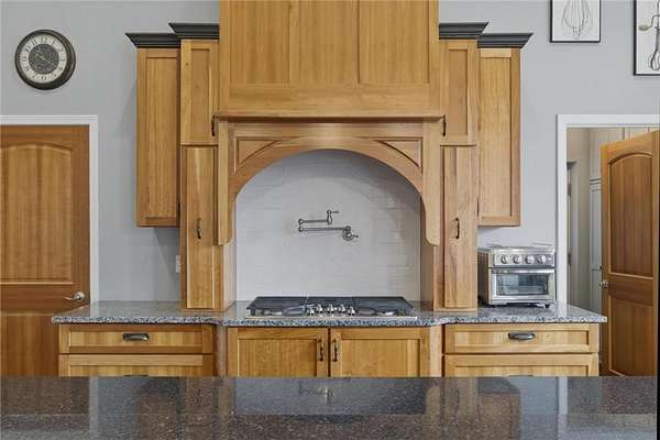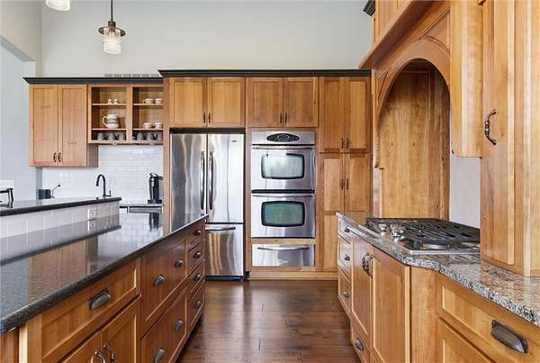 - Cooktop, Dishwasher, Disposal, Double Oven, Down Draft, Exhaust Fan, Gas Range, Humidifier, Microwave, Refrigerator, Stainless Steel Appliance(s), Water Softener