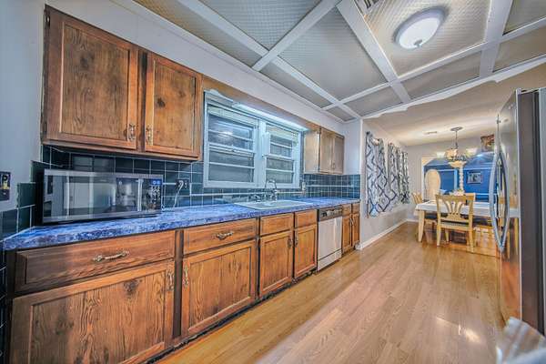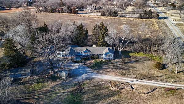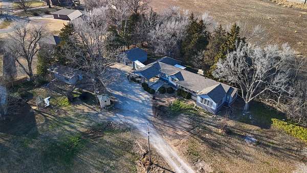 Country Living on the Edge of Town - Nearly 4 Acres! Enjoy peaceful acreage living just minutes from Arkansas City, in this charming 3-bedroom, 1.5-bath ranch home (2,123 sq ft) on 3.96 wooded acres. Built in 1947 with recent updates including a new Luxury Vinyl Flooring in the living room, newer roof, gutters and exterior paint (2021). Inside, find two living areas-one with a cozy wood-burning fireplace-plus a spacious kitchen/dining combo, main-level bedrooms, ceiling fans, central air, and gas forced-air heat. The attached 2-car garage and multiple outbuildings (shed, barn, falcon house, plus a bonus building with potential for extra living space) provide plenty of room for toys, hobbies, or storage. Shaded by mature trees on an irregular lot with paved frontage, patio, and guttering. Perfect for those seeking space and serenity near USD 470 schools. Don't miss this versatile gem-schedule your private showing today by contacting the listing agent!