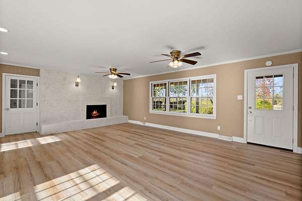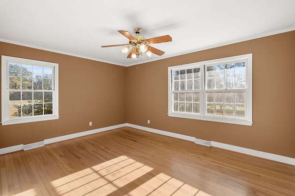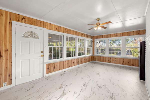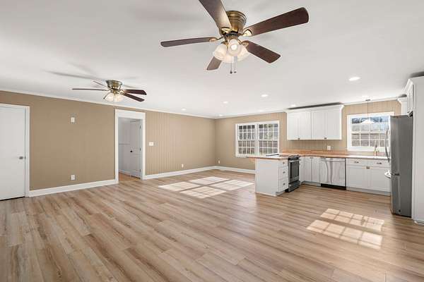 If you've been looking for land, privacy and a home that's already renovated, this is it. This brick ranch sits on two peaceful acres just a few miles south of St. George, offering a quiet setting with excellent privacy. Over the past two years, the home has undergone over $100,000 in quality renovations focused on function, aesthetics and long-term value.The floor plan was opened by removing walls and installing a structural LVL beam, creating easy flow between the living, dining, and kitchen areas. Original hardwood floors have been refinished, with luxury vinyl plank in the main living spaces and luxury vinyl tile in the sunroom and laundry room.The kitchen features all-new appliances, soft-close cabinetry, and updated countertops. Additional upgrades include fresh interiorpaint, new trim and crown molding, a refinished fireplace, updated vent covers, and an insulated attic. All three bathrooms have been updated with new tile, vanities, mirrors, lighting, hardware, vent fans, and toilets. The primary and hall baths feature pine ceilings, and a third full bath is located in the laundry room. Major plumbing upgrades include a new main septic line (2023) and conversion from cast iron to PVC. Outside, wrought iron fencing with 3 gated accesses enclose the yard. The property includes fruit-bearing fig, pear and pecan trees as well as a large muscadine vine. There is a workshop next to the carport attached by the driveway and two additional backyard barns. A second well on the property provides added utility and with two acres, there is room for an additional structure.